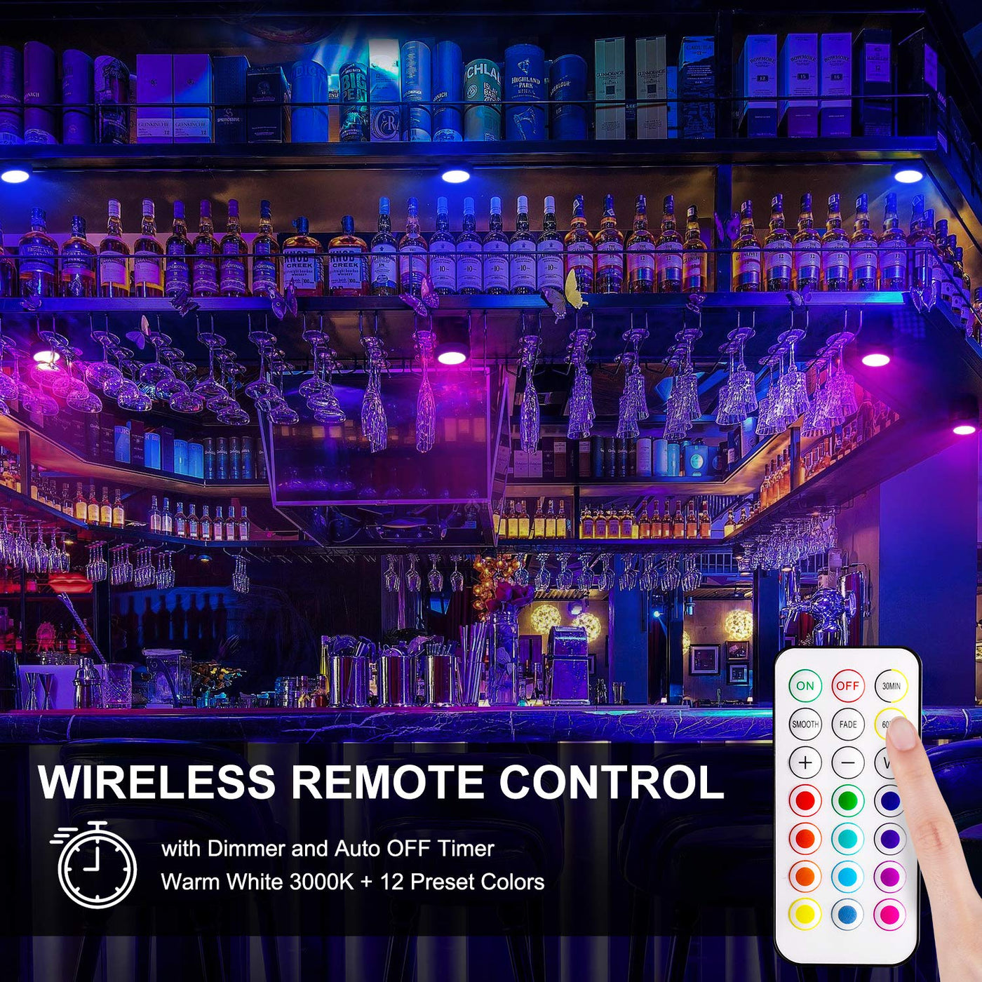 Alivation Led Under Cabinet Lighting, 6 Color Changing Puck Lights With Remote Control, White