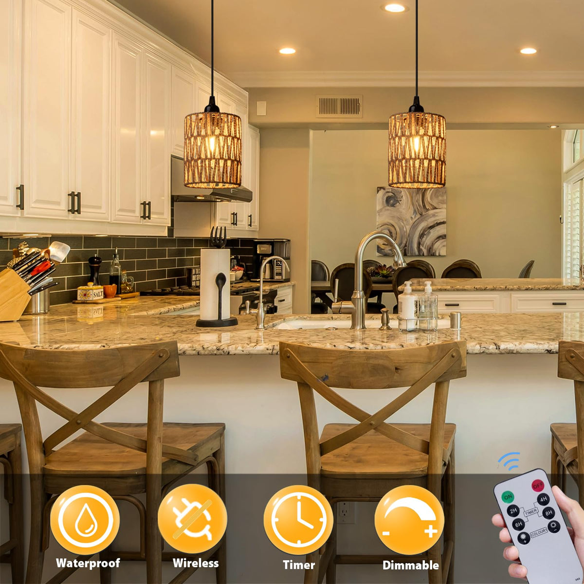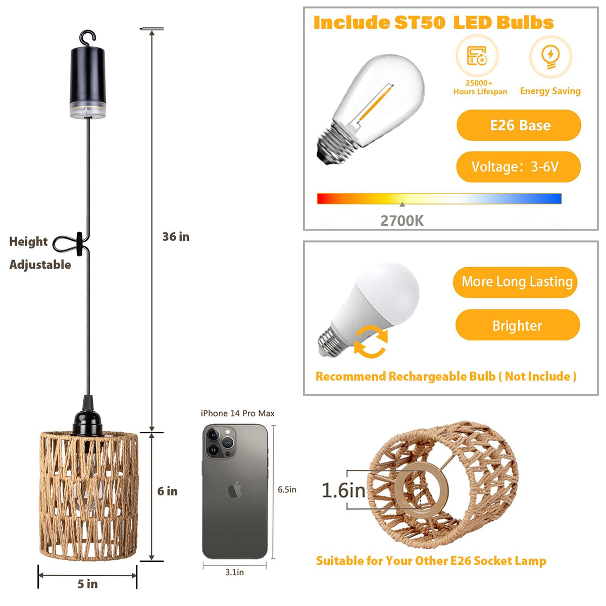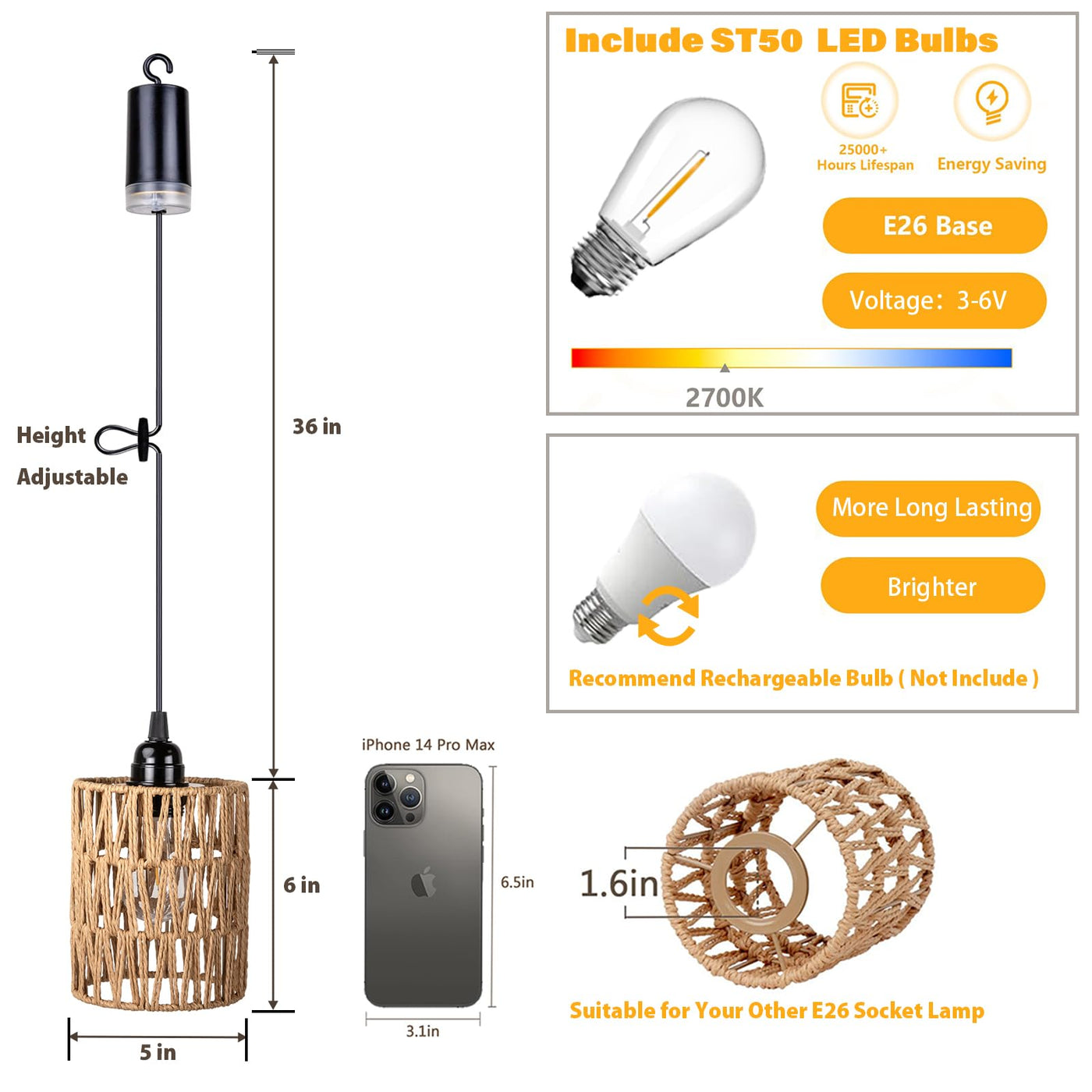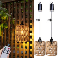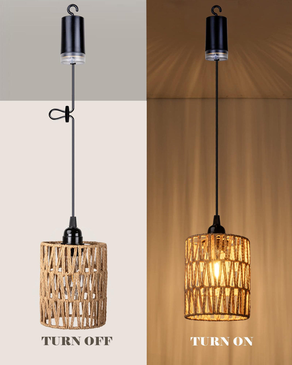 All Fortune Battery Operated Chandelier, Battery Hanging Pendant Light, Rattan Lights With Warm White Bulb, 4*Aa Battery Powered, For Gazebo Pergola Porch Patio Outdoor Indoor Decor (2)