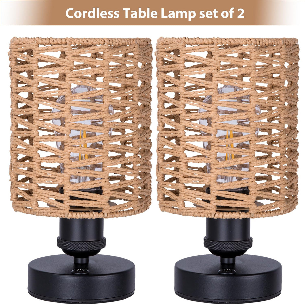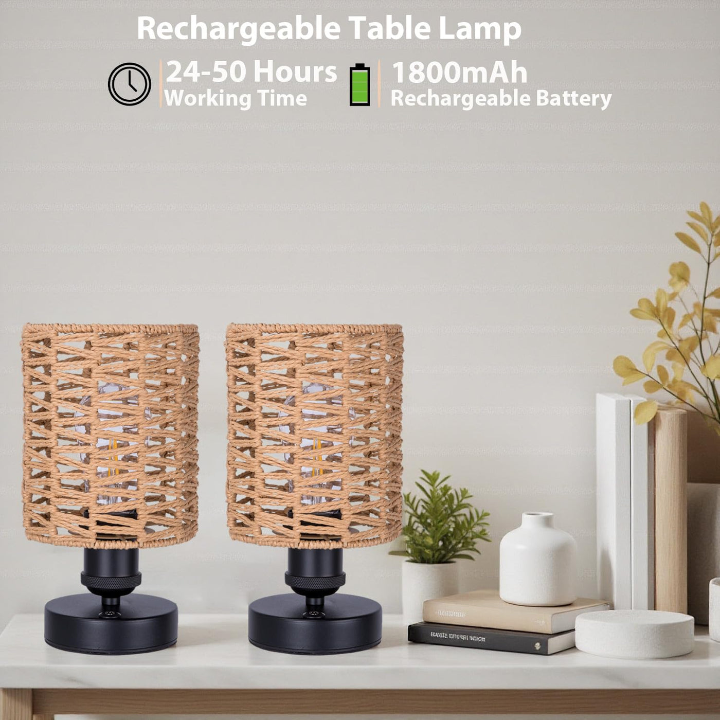 Cordless Table Lamps - Set of 2 | Small Wireless Rattan Boho Design | Rechargeable & Battery Operated Enhance your space with our Cordless Table Lamps, a set of 2 small, wireless table lamps designed to bring boho charm and modern convenience to your home. Featuring a stylish rattan design, these rechargeable lamps are perfect for creating a warm, inviting glow covering the outdoor patio, living room, bedroom, or bedside.