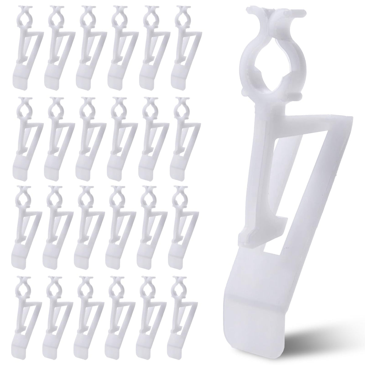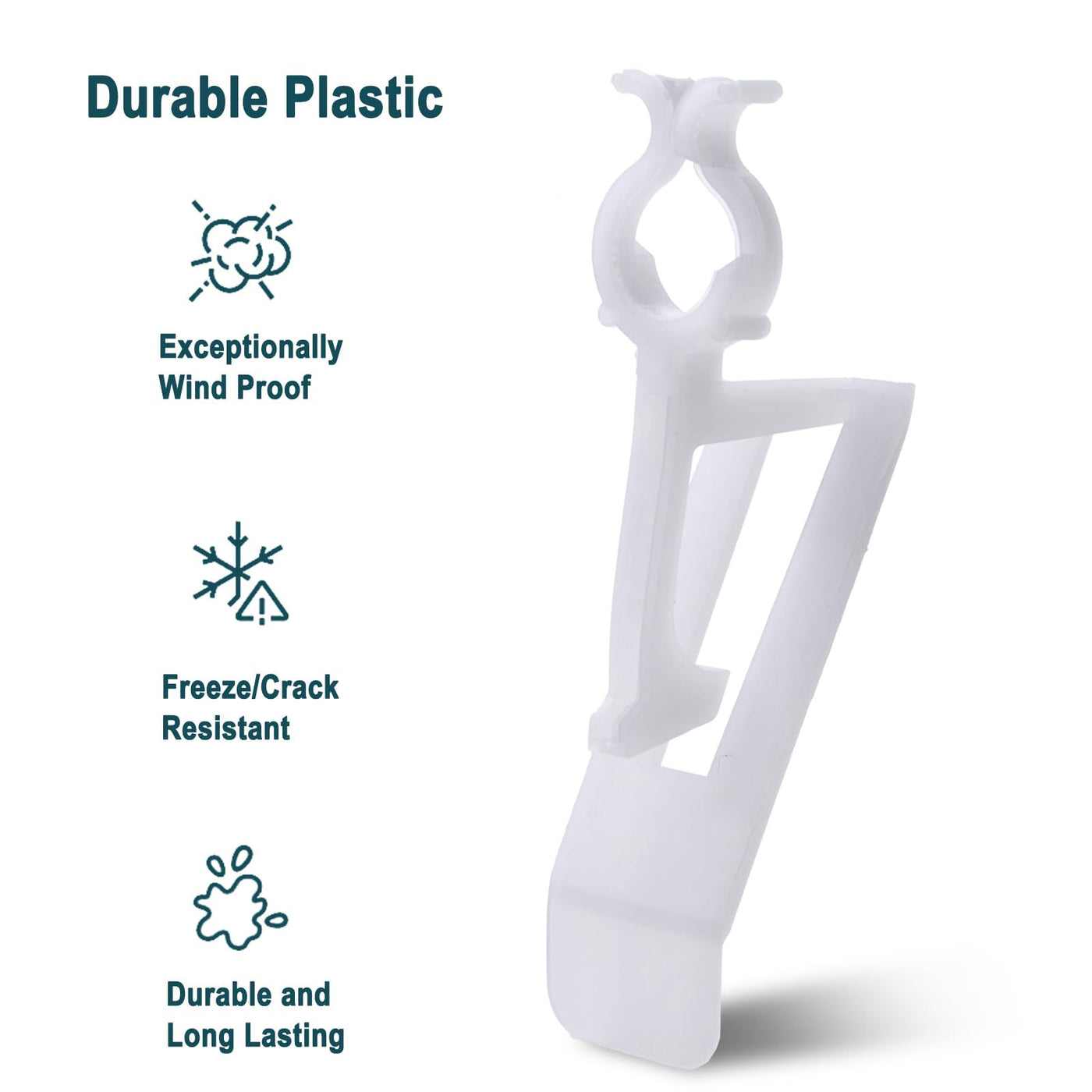 Introducing our versatile and convenient all-in-one clip for light strings brought to you in a pack of 100! Made of clear plastic, these clips are perfect for hanging your favorite types of lights including c9, c7, and mini lights on your roof, gutters or shingles with ease. The user-friendly design allows for quick installation, ensuring that your lights are up in no time. These clips are created to hold bulbs in a horizontal orientation on gutters and vertical on shingles, so you can enjoy an organized and uniform display. The clip's sturdy design ensures that your lights stay put, no matter the weather condition. Prepare your home for the holiday season with these durable and secure light clips. The festivities can start with a single clip, the perfect accessory for creating a warm and welcoming ambiance during the holiday season. Make your Christmas merry and bright with our all-in-one clip pack.