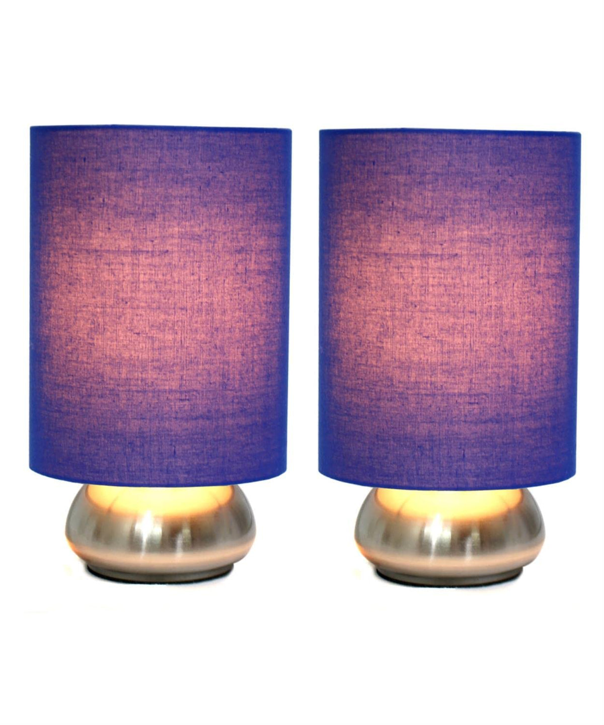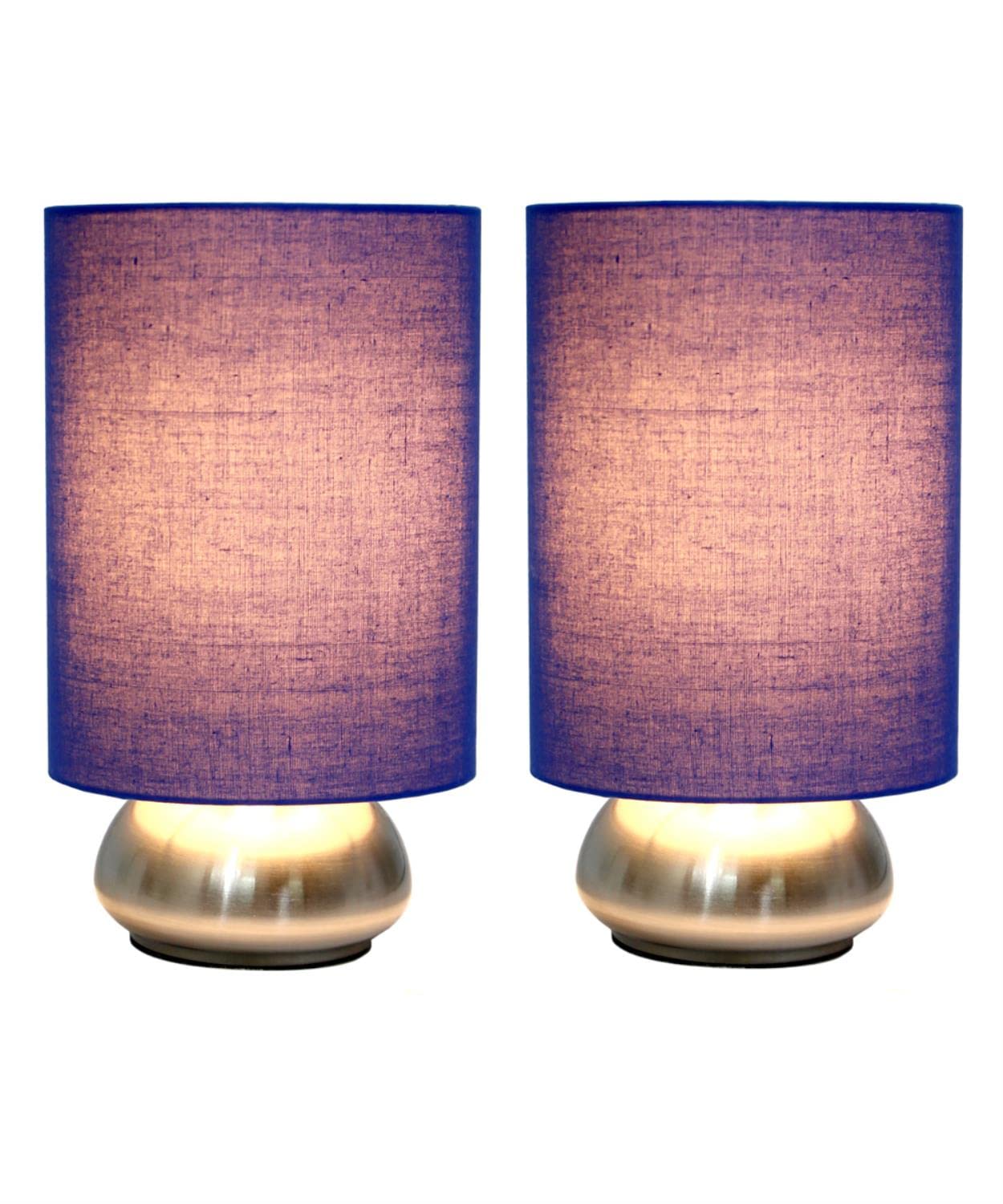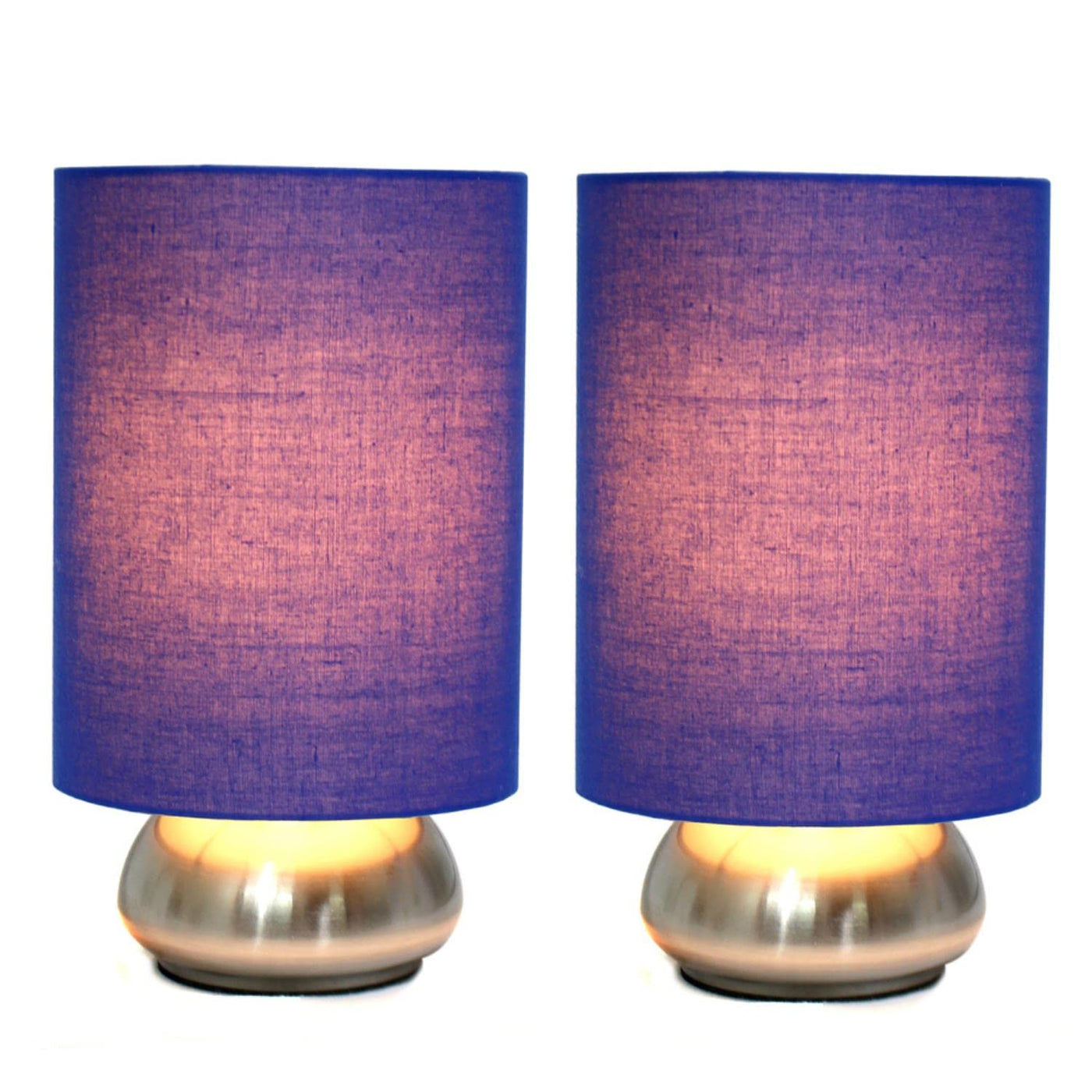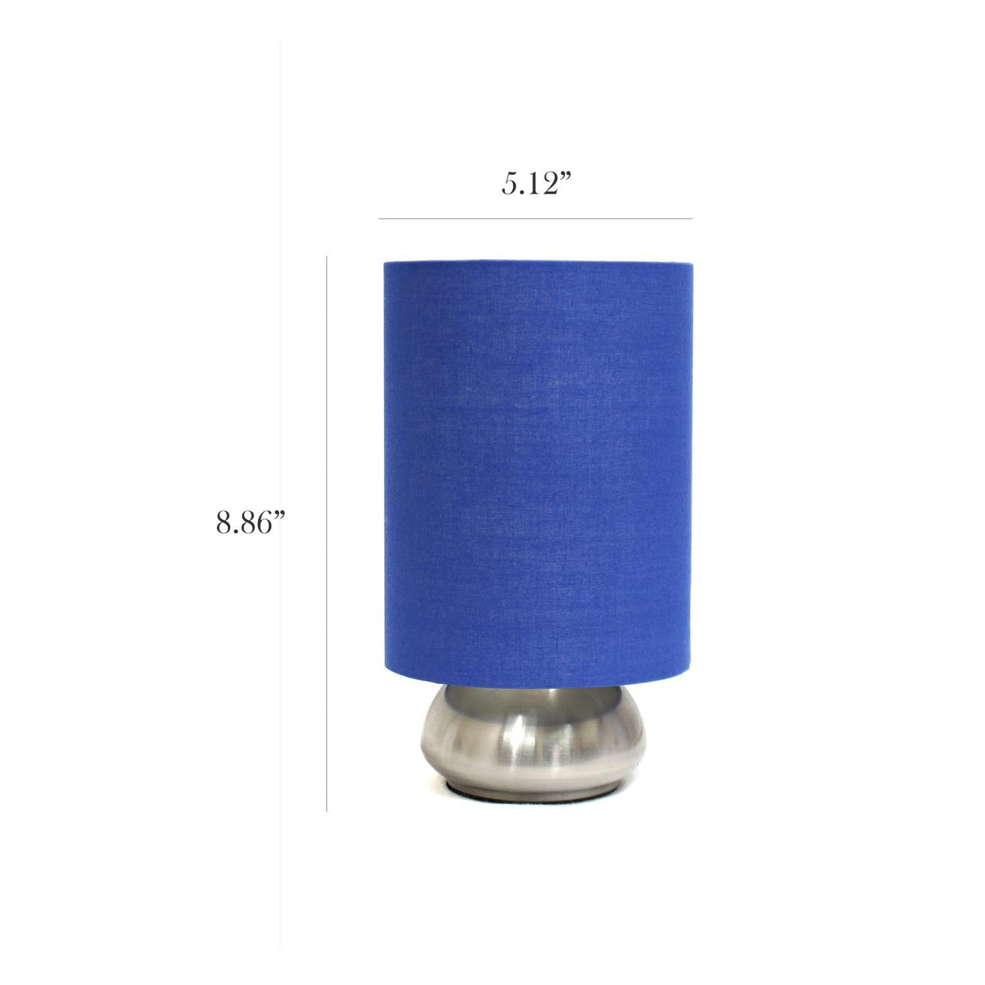 Add a contemporary feel to any room with these attractive brushed nickel touch lamps. Touch controls with 4 settings (Low, Medium, High, Off). The fabric shades complete this modern look. Perfect lamp for bedroom night tables. We believe that lighting is like jewelry for your home. Our products will help to enhance your room with chic sophistication.Features:2 x Fabric shades2 x Mini brushed Nickel Touch Bases4 touch settings (High, medium, low, off)Dimensions: Height: 9" x Shade Diameter: 5"Each uses 1 x 40W type B E12 Candelabra Base bulb (not included)Specifications:Frame Material: MetalProduct Color: Brushed NickelProduct Color: Blue ShadeProduct Dimensions: 8.86" H x 5.12" W x 5.12" D