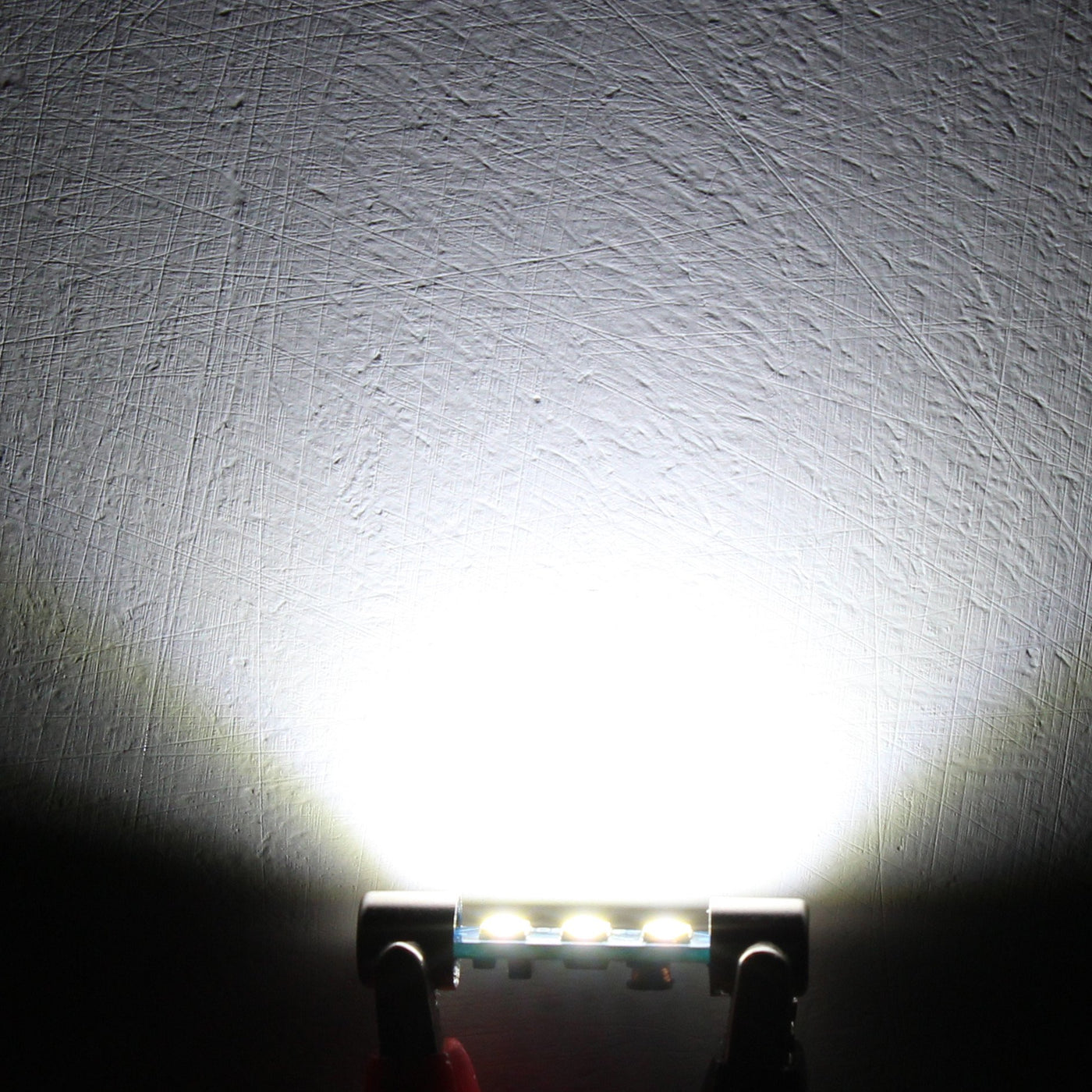 This listing features two pairs (4 pieces) extremely super bright high power 3030 3-SMD led bulbs 29mm white led bulbs, especially designed for auto vanity mirror light,etc.