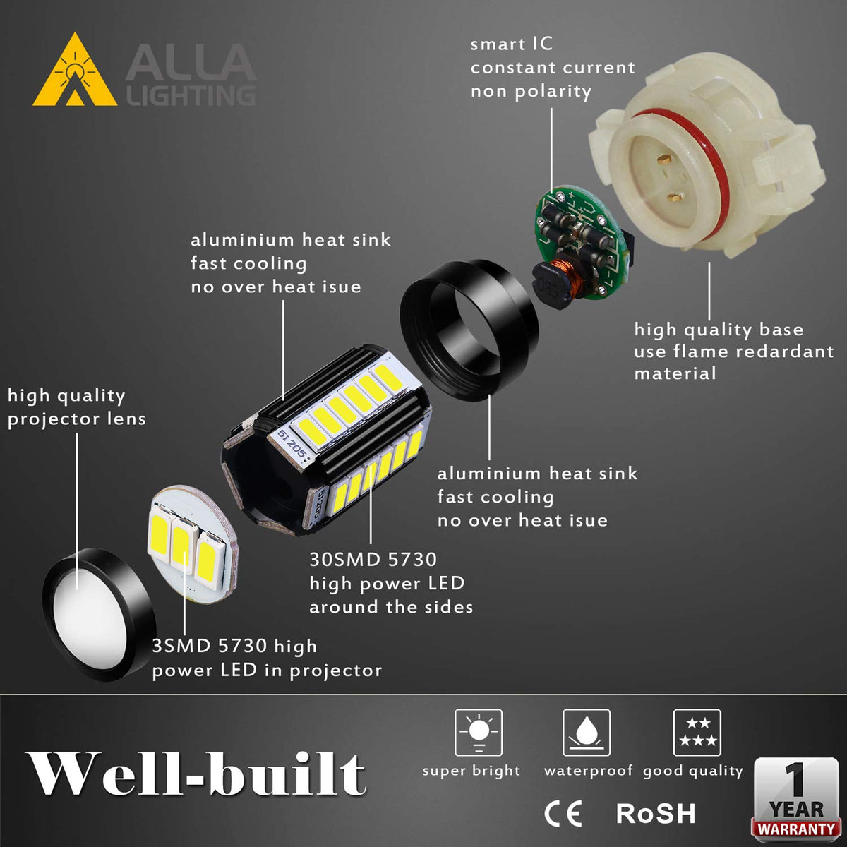 2) LED Chips: 33 pieces high power 5730 SMD per 5201/5202 LED bulb.