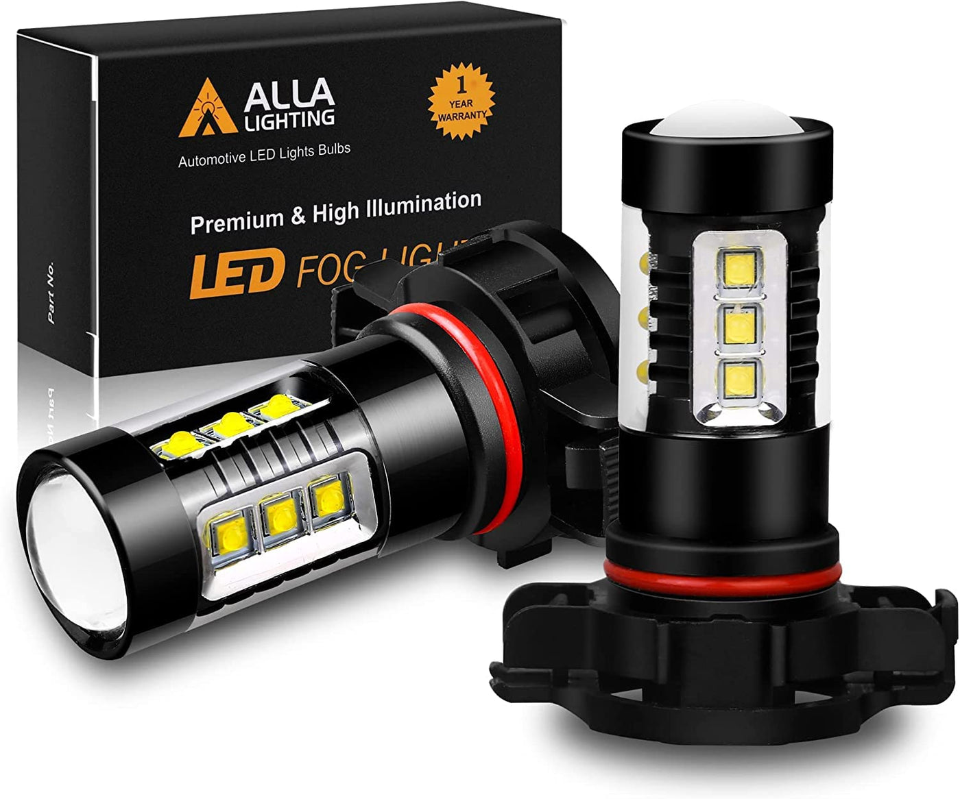 Alla Lighting CANBUS 2504 PSX24W LED Fog Lights Bulbs 12276, 6000K Xenon White Xtreme Super Bright 80W High Power Chipsets12V Replacement This listing features one pair (2 pieces) PSX24W 2504 LED Fog Light Bulbs especially designed for replacing PSX24W 2504 fog light, or daytime running light (DRL) or corner light, super extremely bright high power 80W Osram Specification 1) Package: including 2 pieces extremely super bright 80W PSX24W 2504 6000K xenon white LED bulbs. 2) LED Chips: 16 pieces high power 5W osram chipsets per PSX24W 2504 led fog light bulb. 3) Cross Reference Number: 2504, 12276, PSX24W,etc 4) Application: Fog Light, or Daytime Running Light DRL or Corner Light. Plz note this bulb has no high/low beam function, it cant be used high/low beam headlight. 5) Warranty: 12 months guaranteed on manufacturer quality 6) Please note: Due to led bulbs draw much less current than stock lamp, this bulb can work most cars without flicking or error code, but for some newest type or Japanese/European cars, it may require load resistor to avoid hyper flash or malfunction.