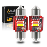 Q: What are the key features of Alla Lighting Dual Color DE3175 DE3021 LED Festoon Bulbs?A: The key features include dual color options (6000K xenon white and pure red), high power 1860 SMD LEDs, CAN-BUS error free technology, and easy plug-and-play installation. Each bulb produces up to 400 lumens, with a total output of 800 lumens for the set.