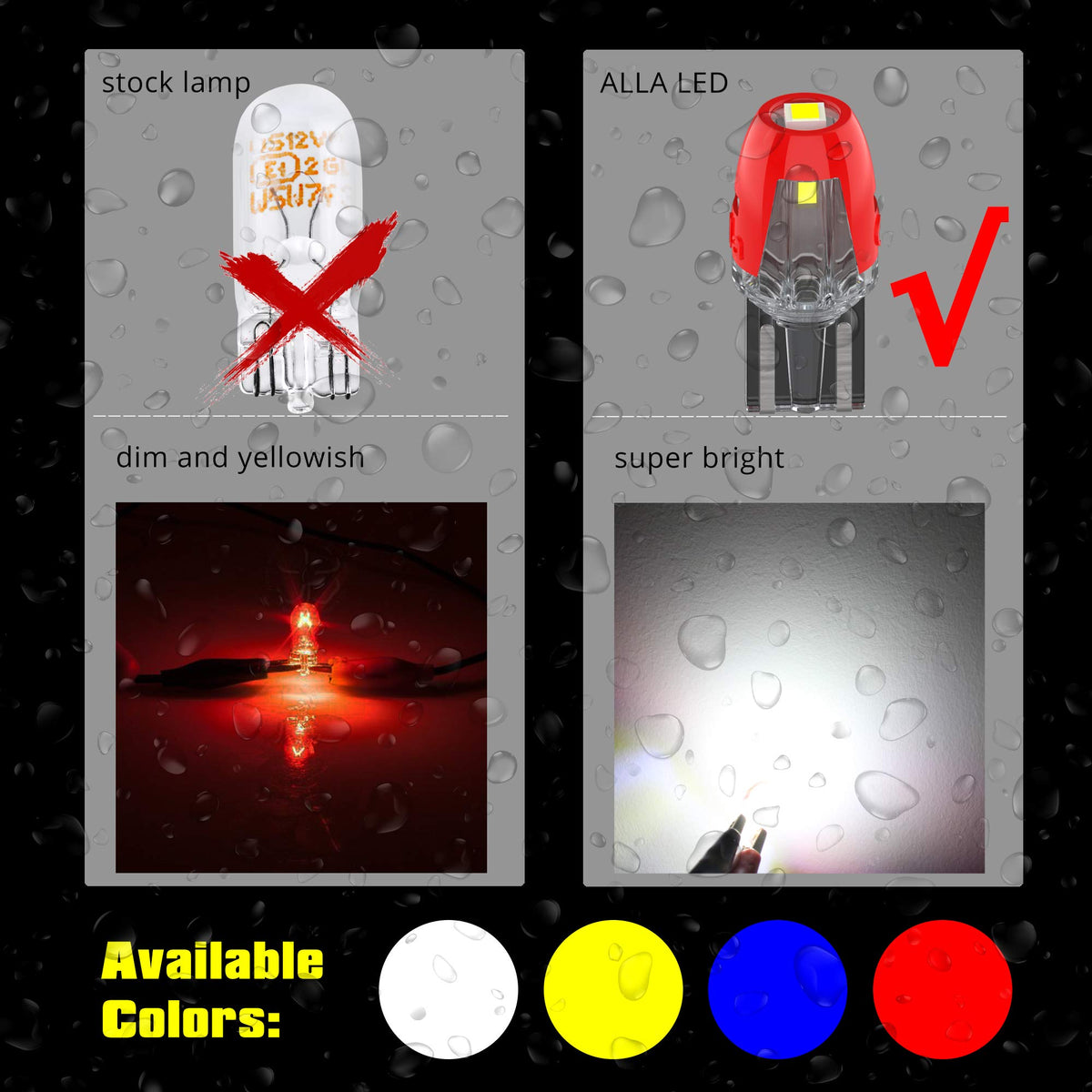 - Q: What types of vehicles are compatible with the Alla Lighting T10 LED bulbs? A: The Alla Lighting T10 LED bulbs are compatible with a wide range of vehicles that utilize W2.1x9.5d base bulbs, including interior lights like dome, map, and glove box lights, as well as exterior applications such as license plate and side marker lights.