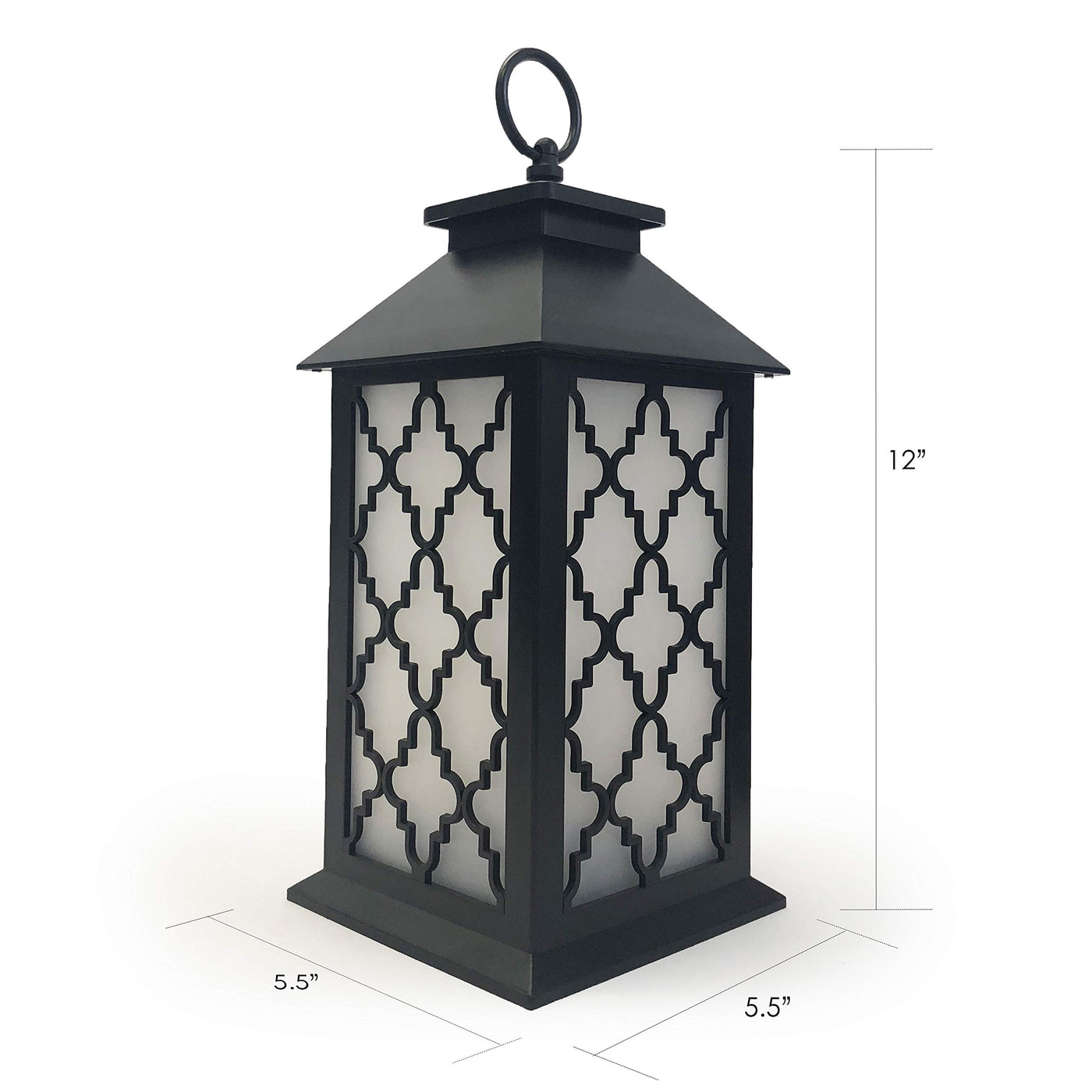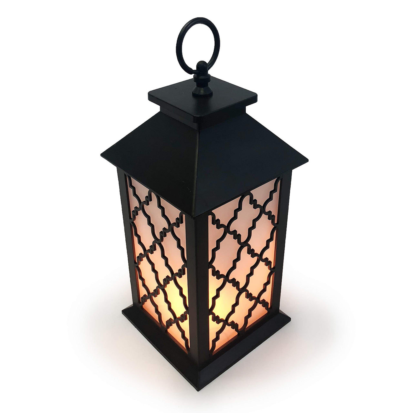 New design flame effect using 3xAA Battery (Not included) last long time. | Iron like plastic black casing make it appear heaving yet actually light weight and portable. Especially appreciated when transfering multiple lamps during event party. | On/off switch at bottom, toggle back and forth for desired setting - Swing Flame/Slow Dim/Vivid Flame. | Designed shade and frost pane creates elegance and mystery. Use it to d