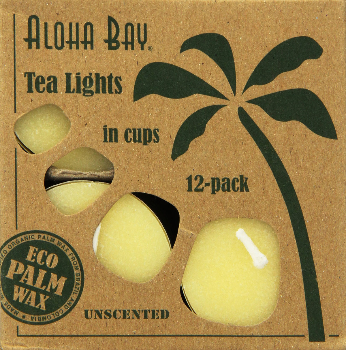Aloha Bay Palm Wax Tea Lights With Aluminum Holder, 12 Count Cream Candles