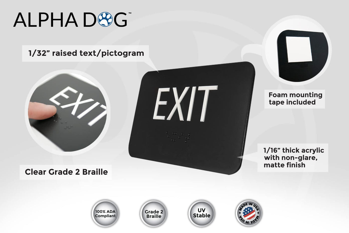 Alpha Dog Ada Signs Braille Exit Sign 3X5 Inch Ada Compliant Indoor Outdoor Business Easy Install Usa Made (Black)