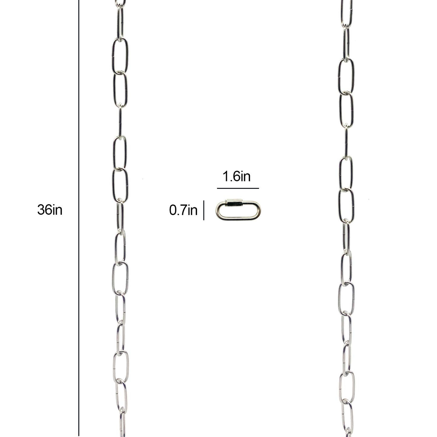 Feature: a.Adjustable design:the total length is 6 feet ,and you can adjust the length of this chandelier chain by increasing or decreasing the number of links according to your needs. b.Wide application: it wide used for your home ,suitable for chandelier, ceiling light, hanging light fixture and hanging fruit baskets or flower pots. It works with flat, sloping, slanted and vaulted ceilings. c.Made of the solid and heavy material ,well completed and heavy construction, the maximum load capacity is 65 pounds that the things hanging from the ceiling are safer.