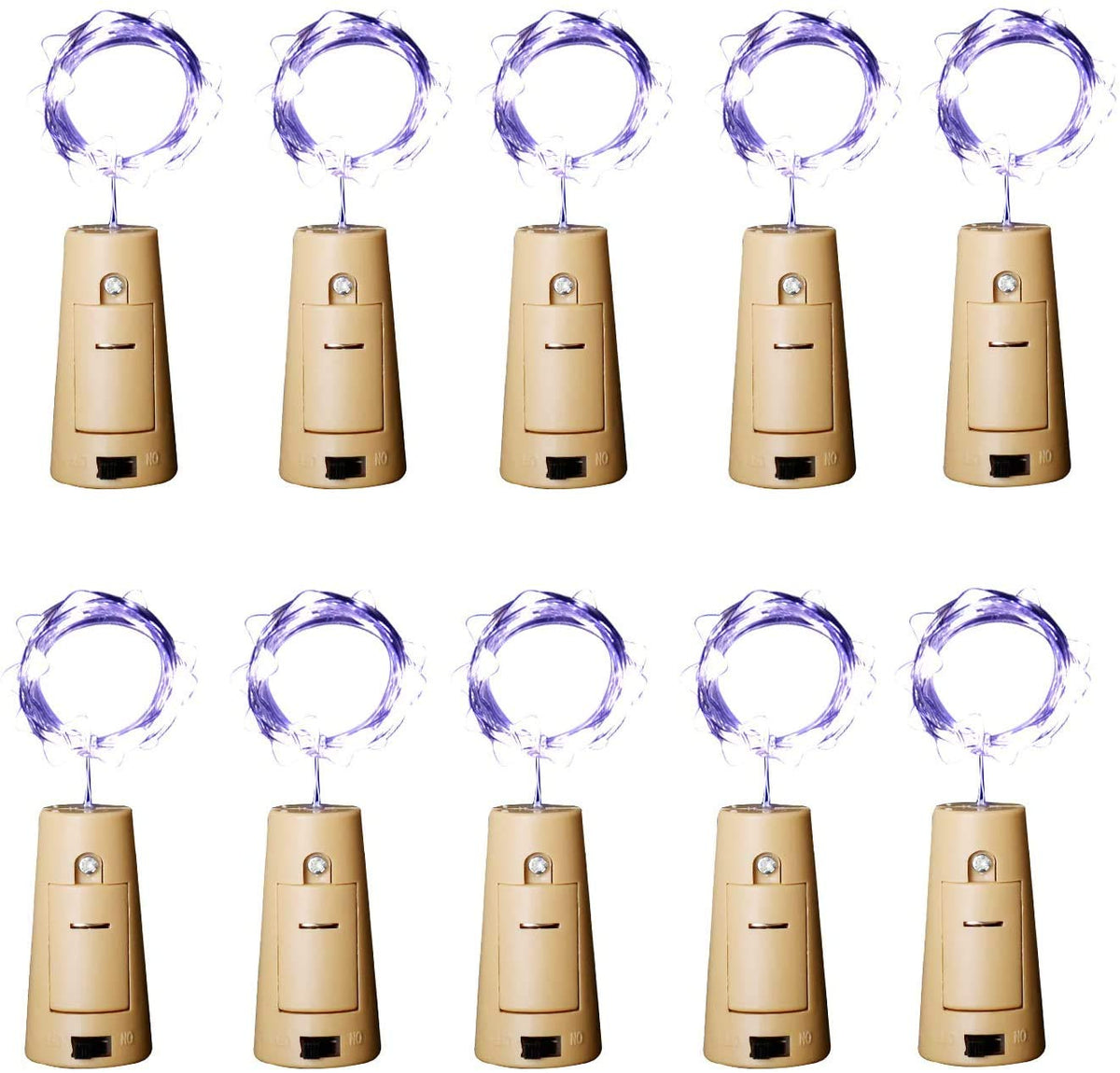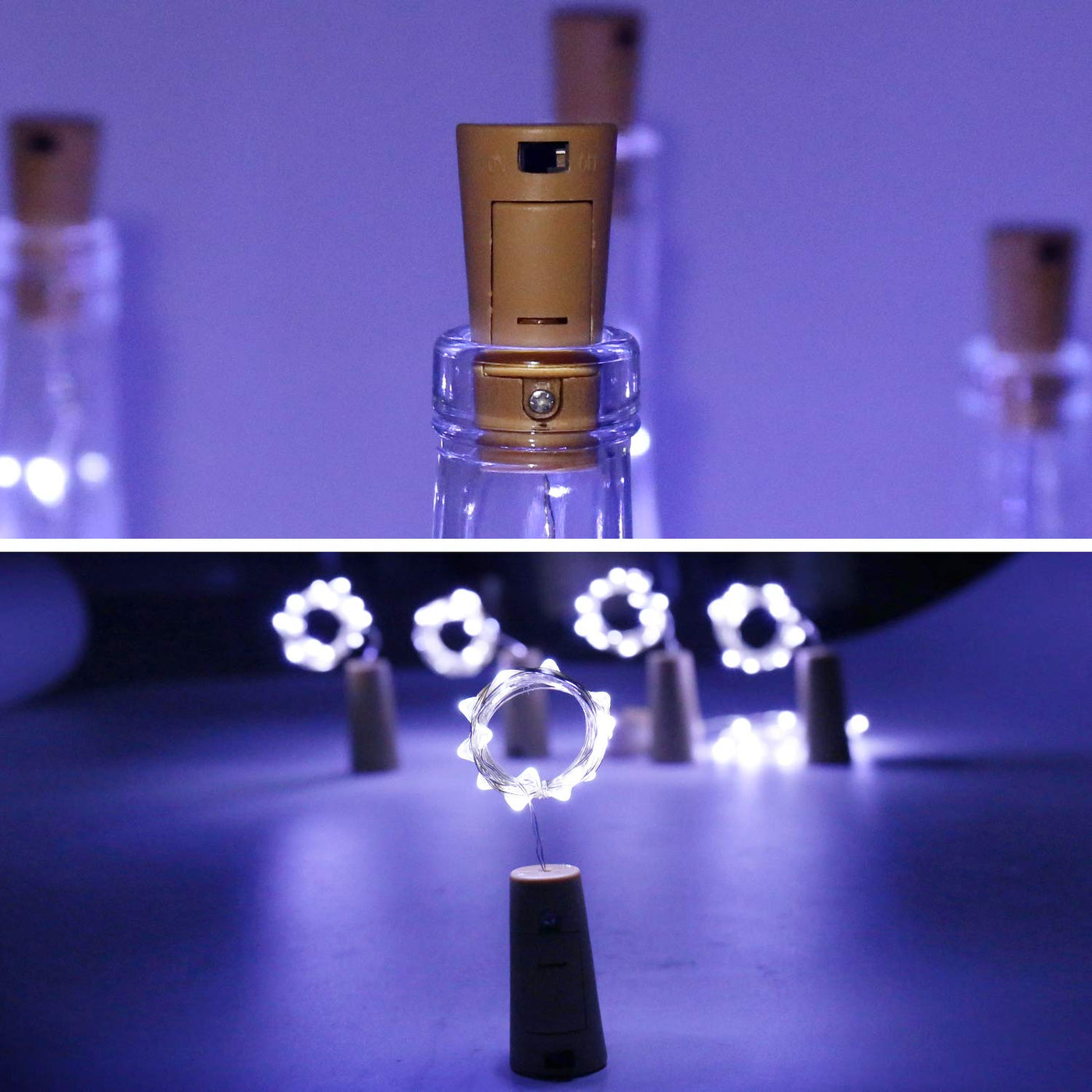 Aluan Wine Bottle Lights 10 Pack 12Led Cork Bottle Lights With Screwdriver Battery Operated Wine Cork Lights String Lights For Party Wedding Christmas Halloween Bar Jar Lamp Decor, Cool White