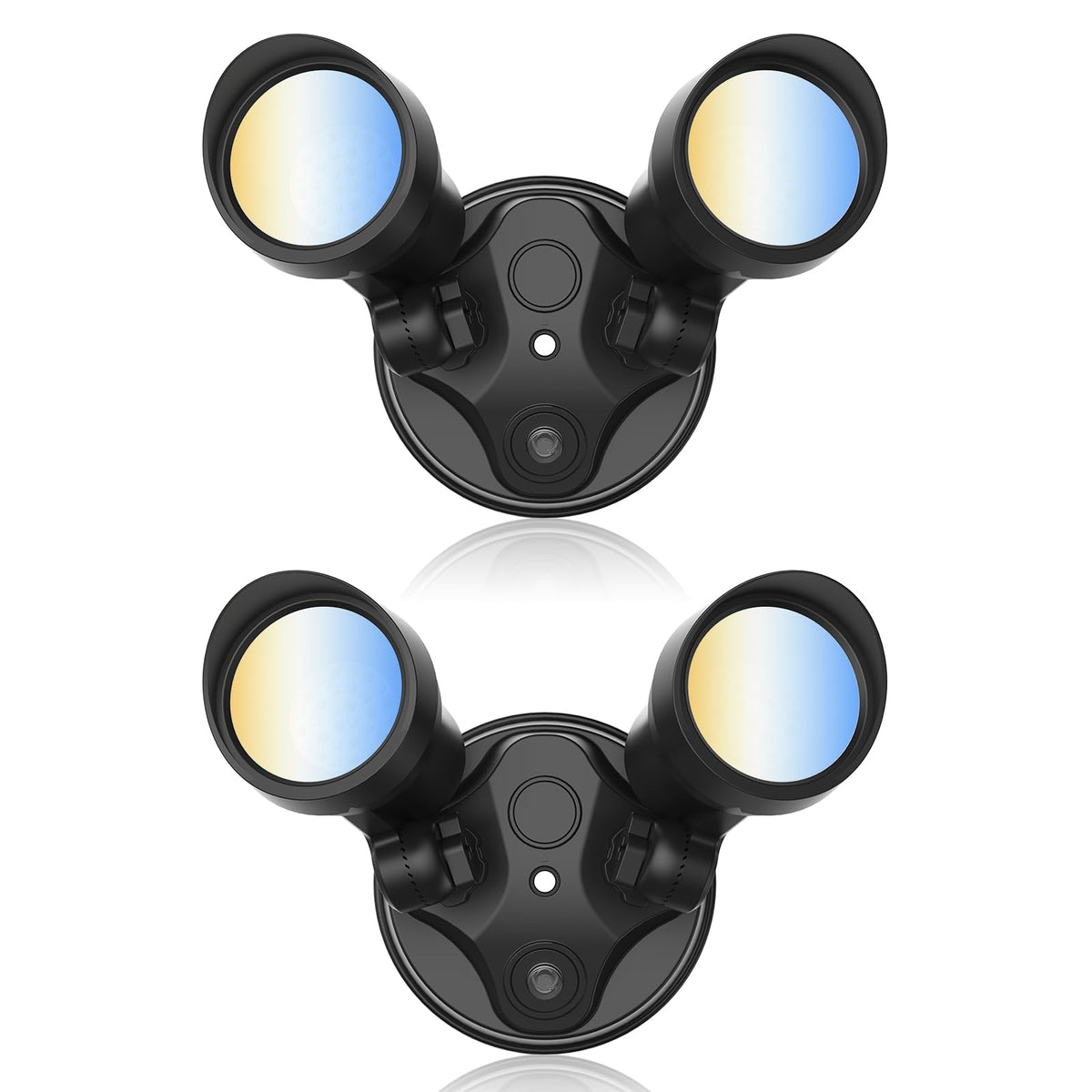 Alusso Lighting 25W Led Dusk To Dawn Security Lights, 1900Lm Ip65 Waterproof Exterior Flood Lights, 3000K/4000K/6000K Selectable, 2 Adjustable Heads Outdoor Lights For Yard, Garage (Black 2 Pack)