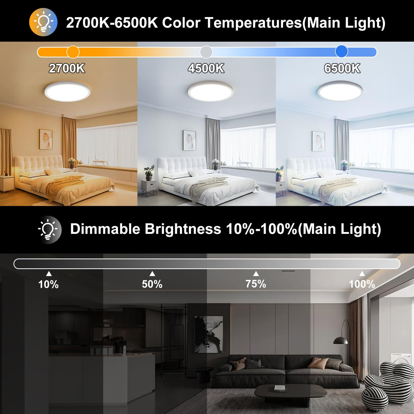 3 Color Temperature Stepless Dimming: Adjust Brightness From 10% To 100% And Color Temperature From 2700K To 6500K Using The Remote Control, Accommodating Various Lighting Needs.