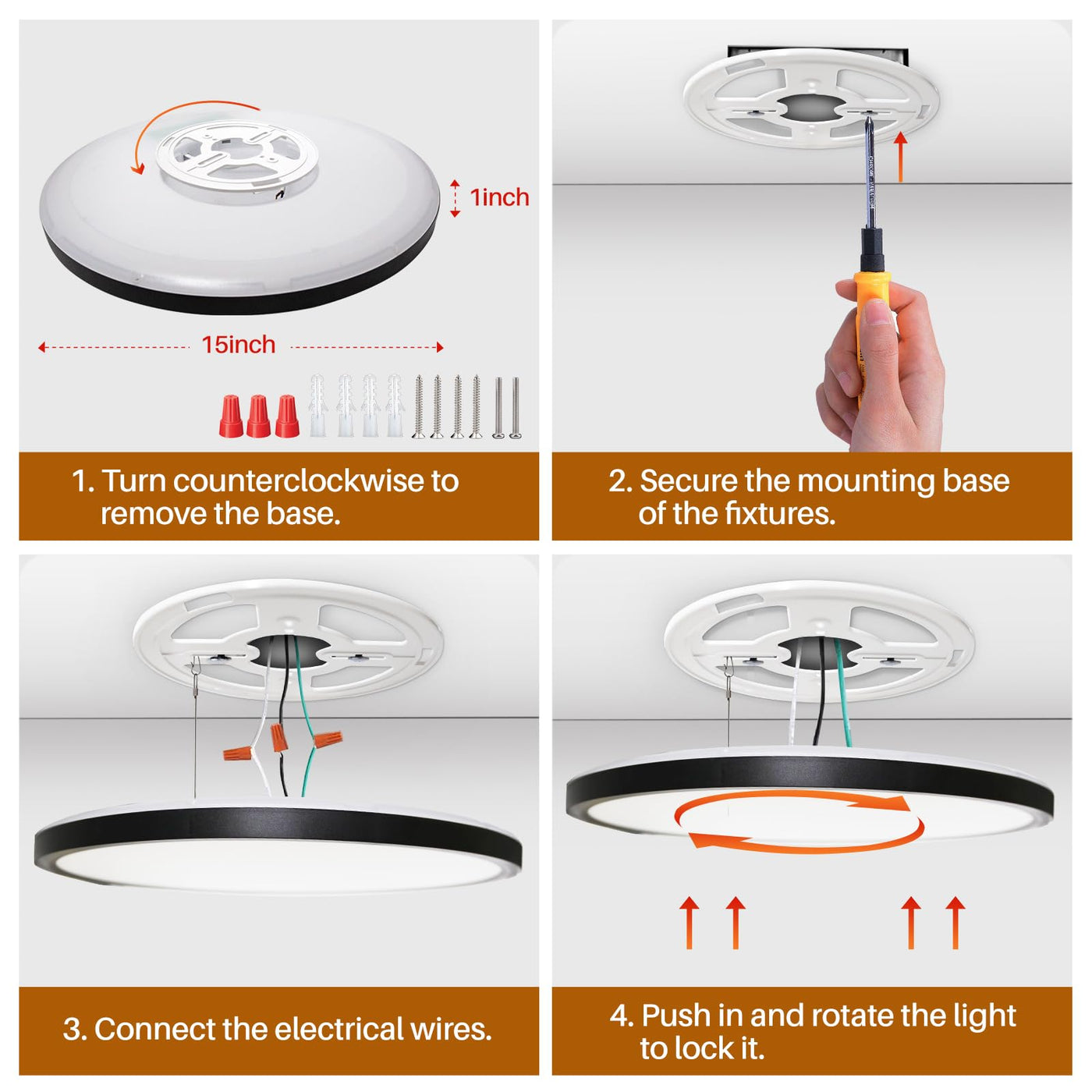 Amazefan 15 Inch Led Flush Mount Ceiling Light - 36W Dimmable, Night Light, Black, Model: Led Deckenleuchte