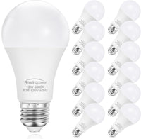 AMAZING POWER 100W Equivalent Light Bulbs, A19 E26 LED Bulbs, Energy Efficient 12W, 5000K Daylight White 1200 Lumens, Non-Dimmable, 12-Pack
