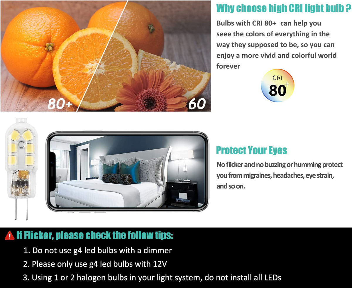 - **Energy Efficient:** Replace your 20W halogen bulbs with our 1.5W G4 LED bulb to save up to 93% on your energy bills, making it an eco-friendly choice for any lighting project.