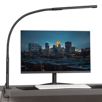 Amazlit Desk Lamp, Eye-Caring Desk Light, Gooseneck Lamp With Clamp, Adjustable Color Temperature & Brightness, Clip On Lamp With Memory & Timer Function, Clamp Lamp For Home Office, 12W, Black