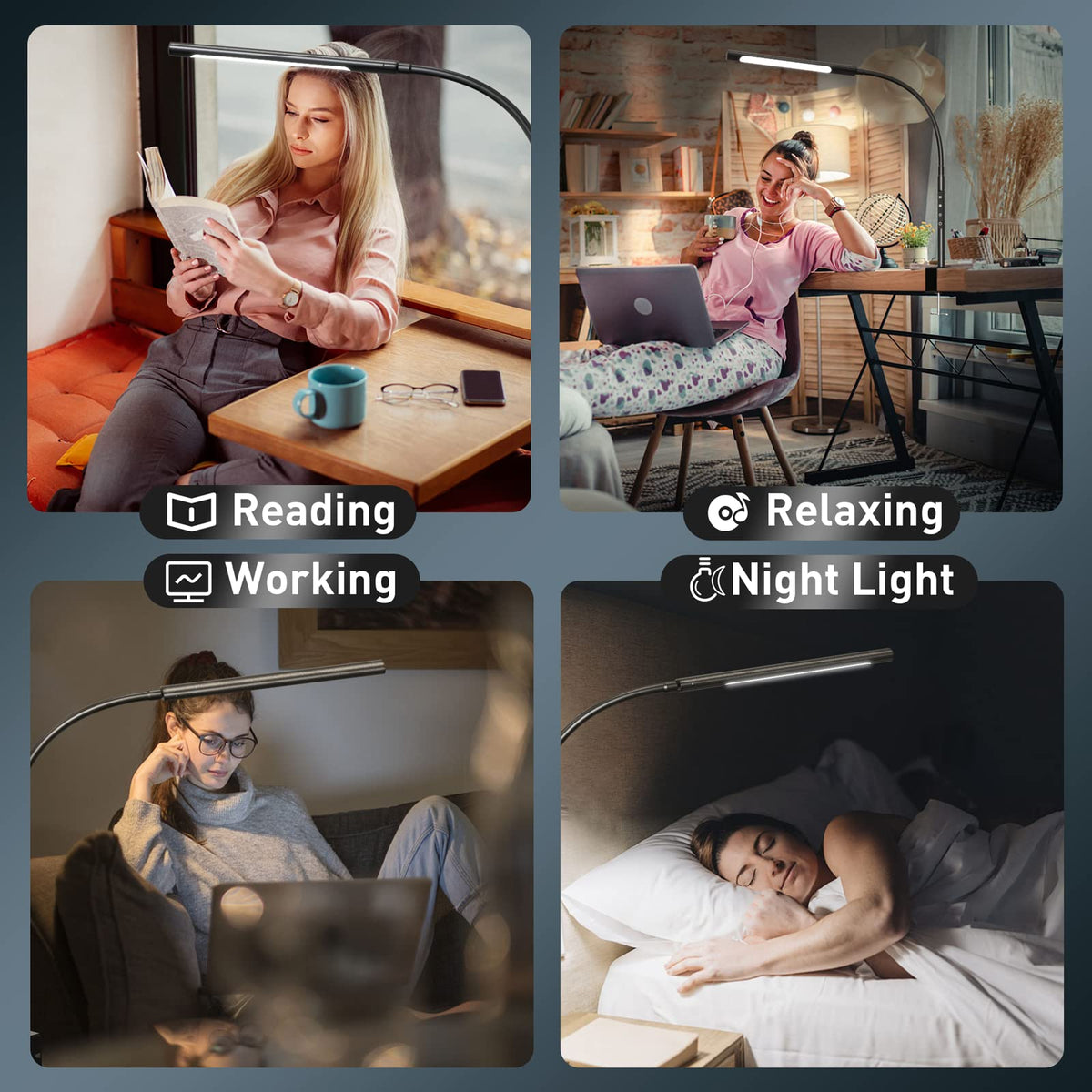 Amazing Your Life; Lighting Up Your Smile! Amazlit Flexible Gooseneck Desk Lamp Not Only Contains A Single Function Of Traditional Lamp Like Studying, Reading, But Contains Adjustable Brightness And Color Temperature, Memory Function, One-Click To Reading Mode And Could Compatible With Wall Swich And Smart Plug, Which Can Be Applied To Office Illumination, Workstation, Design Drawings, Personal Craftsmanship And So On. We Bet A Such Desk Lamp Will Be A Good Partner For Your Work And Life!