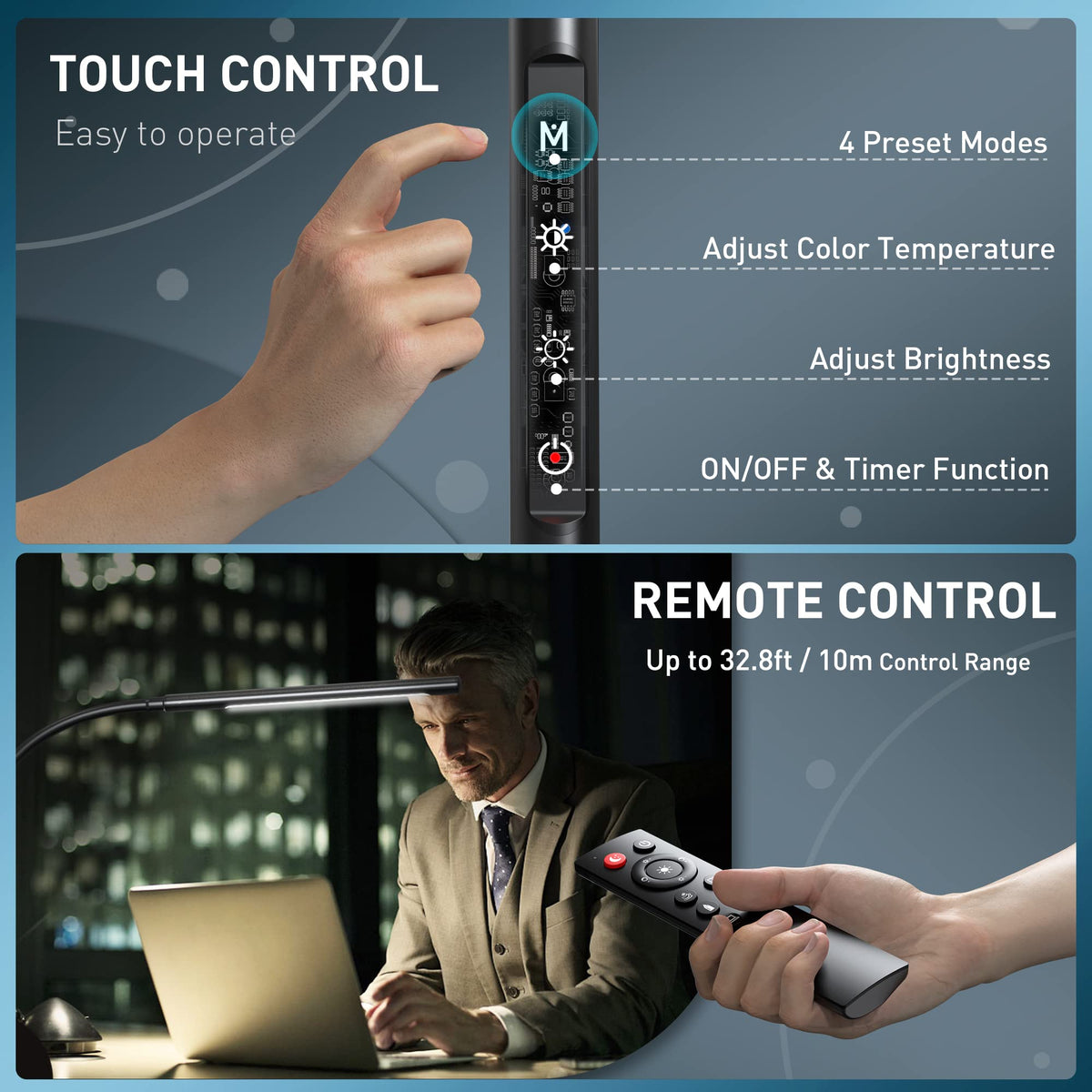 Amazlit Swing Arm Desk Light With Remote Control, Eye-Caring Gooseneck Desk Lamp, Adjustable Brightness & Color Temperatures, Mo