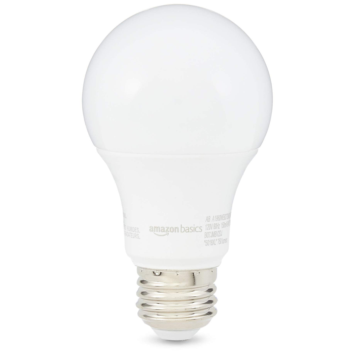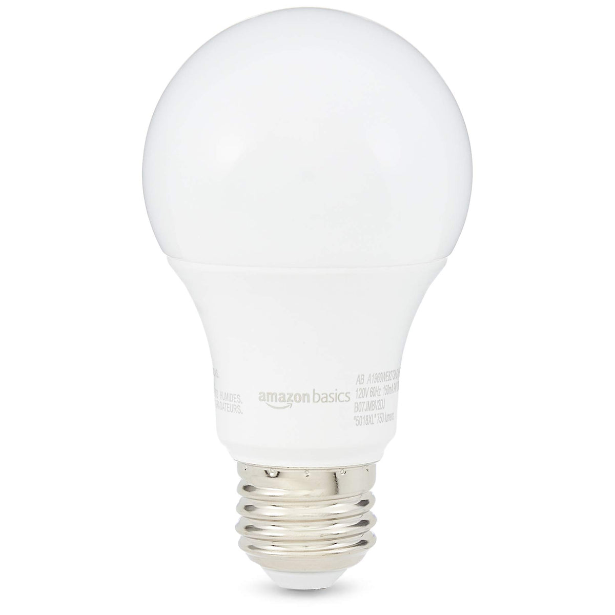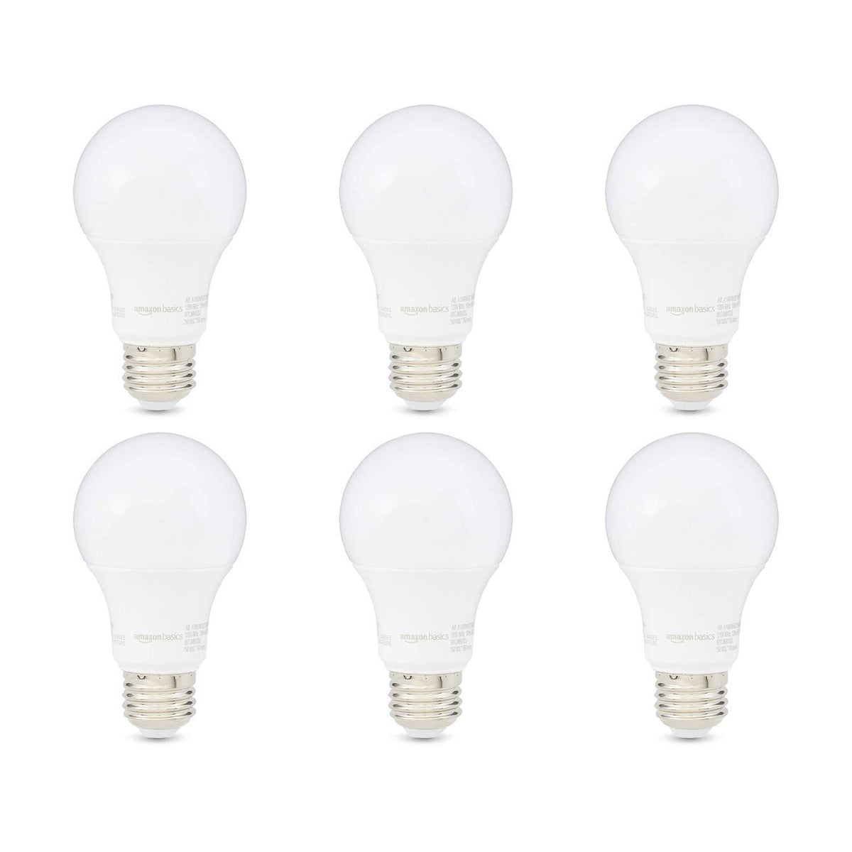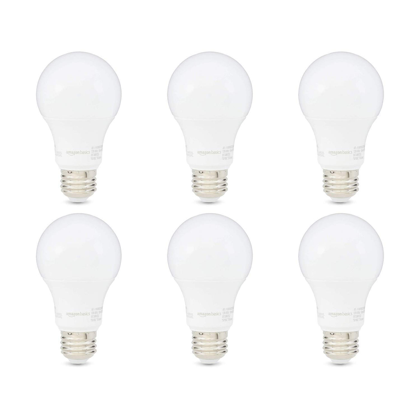 Product DescriptionThe Amazon Basics A19 LED Light Bulb, 60 Watt Equivalent, Energy Efficient 9W, E26 Standard Base, Soft White 2700K, Non-Dimmable, 10,000 Hour Lifetime | 6-Pack is a great choice for your home or office. These 60 watt replacement light bulbs use only 9 watts of energy, costing only $1.08 per year to operate. That is a saving of $55.87 in energy costs over life of the bulb compared to the incandescent equivalent (based on 3 hours/day, $0.11/kWh). These bulbs are Soft White (2700K) providing a soft white light, creating a comfortable atmosphere for any room. These LED light bulbs have a 10,000 hour lifespan; lasting over 9 years (based on 3 hours of use each day). Start saving today with these energy efficient A19 LED Light Bulbs. These lights have a E26 Standard base.From the ManufacturerAmazon Basics