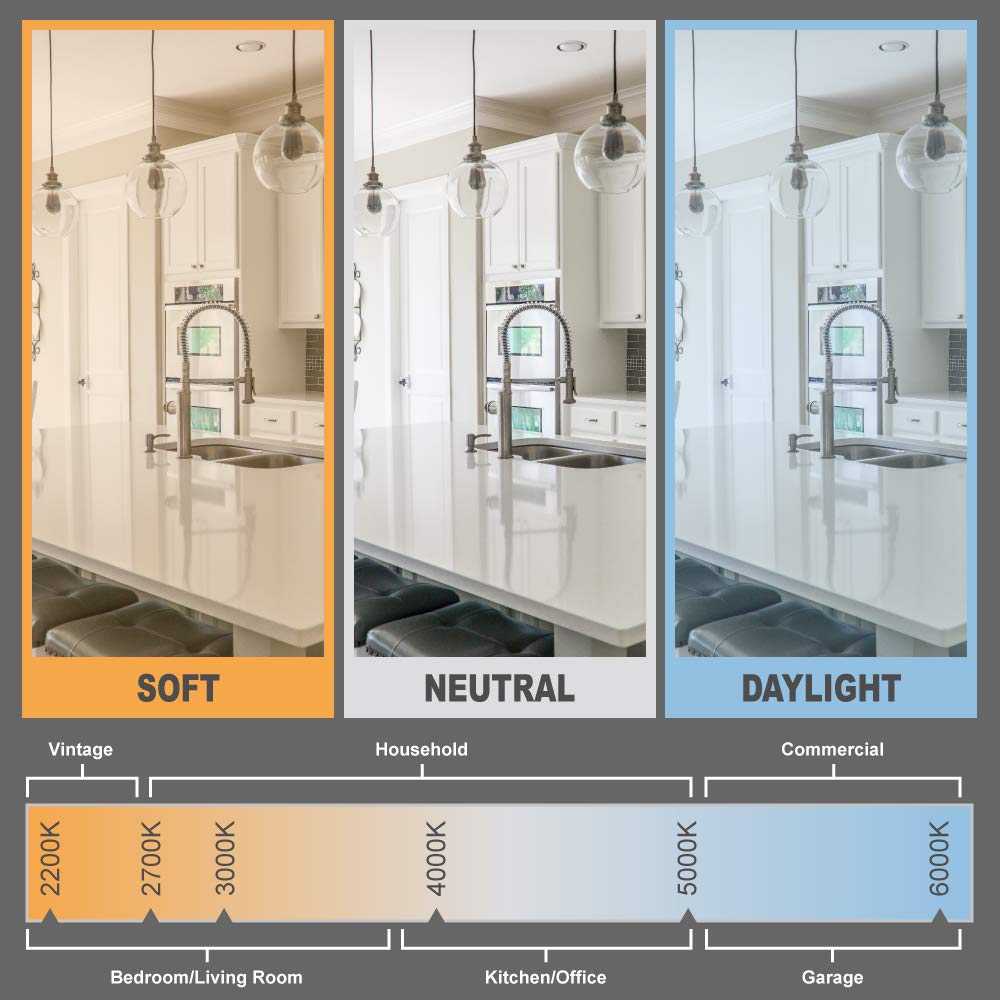 Q: What color temperature does this bulb provide?A: The bulb provides Daylight White light at 5000K, simulating natural daylight to create a bright and crisp atmosphere.