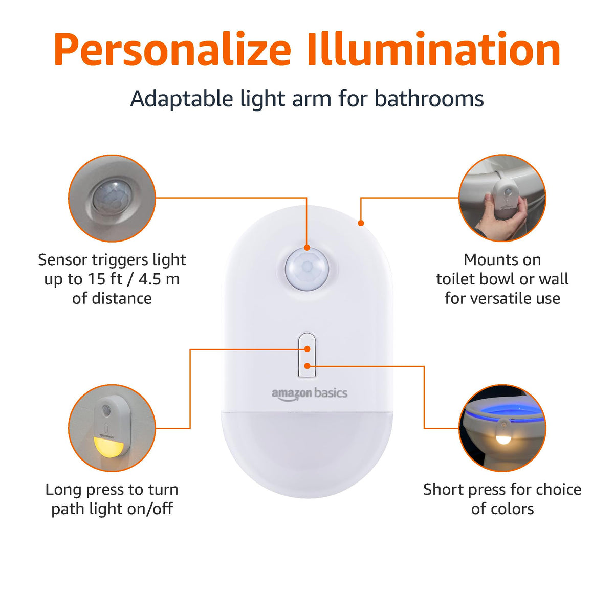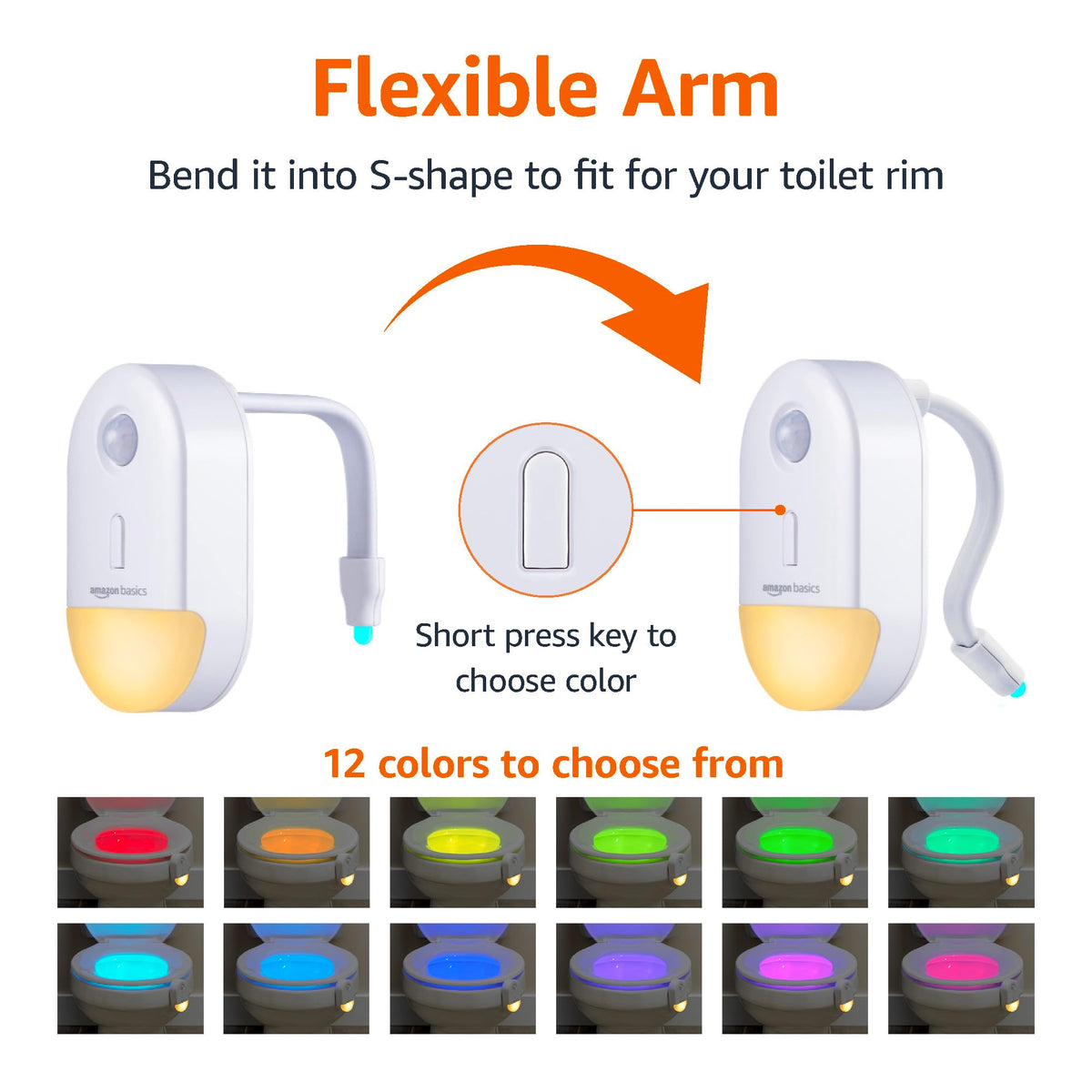 Upgrade your bathroom lighting with the Amazon Basics Color-Changing LED Toilet Light. This innovative device enhances your bathroom experience by providing colorful illumination and practical functionality, making it an ideal solution for late-night visits and creating a soothing ambiance.