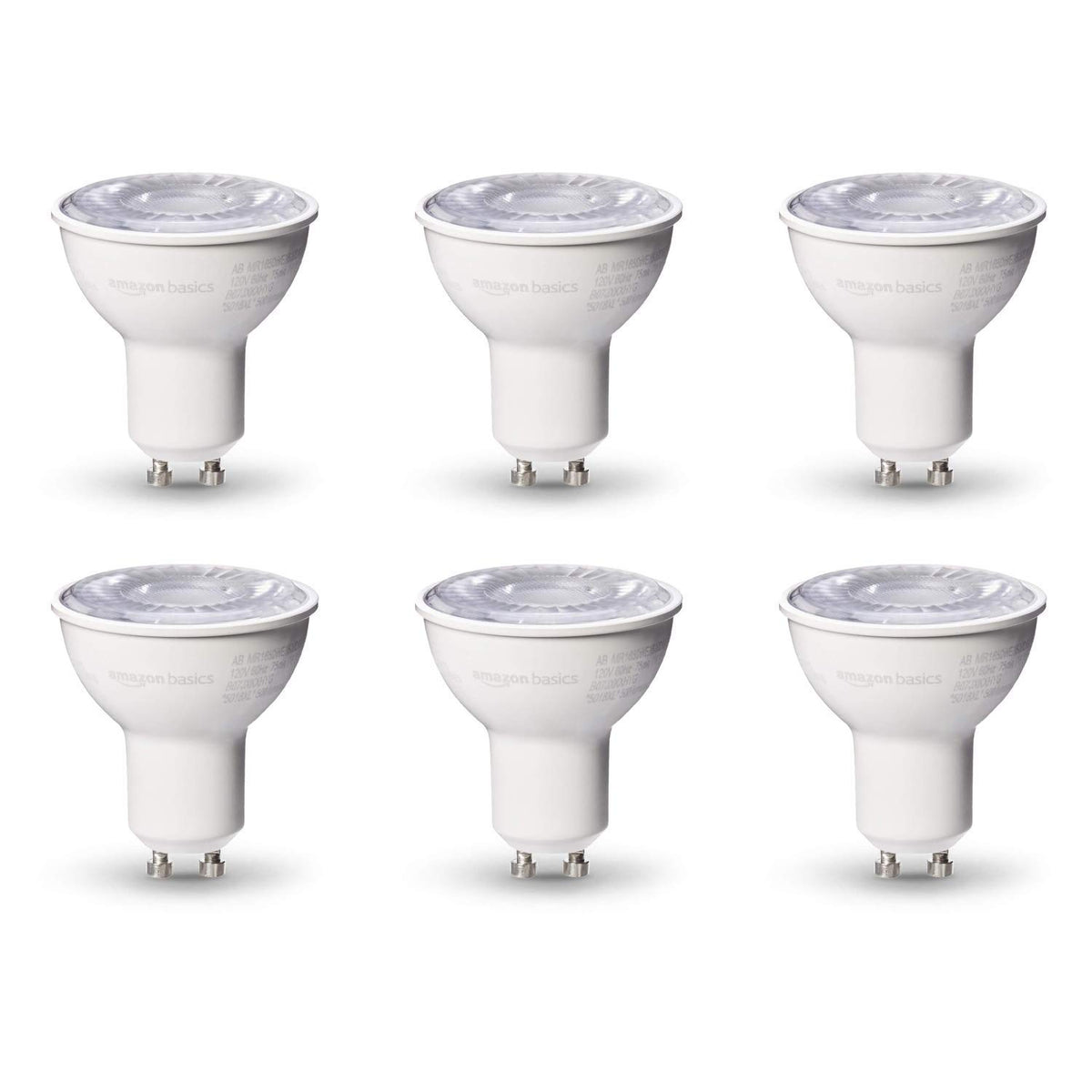 Amazon Basics Mr16 Led Light Bulb, 50 Watt Equivalent, Energy Efficient 7W, Gu10 Base, Daylight White 5000K, Dimmable, 10,000 Hour Lifetime , 6-Pack