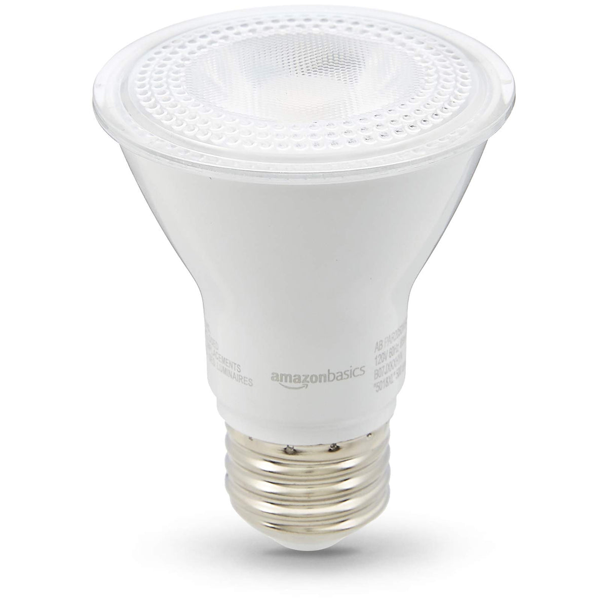 Amazon Basics PAR20 LED Light Bulb, 50W Equivalent, 7W, Dimmable, Warm White 3000K, 6-Pack, E26 Standard Base, Energy Efficient