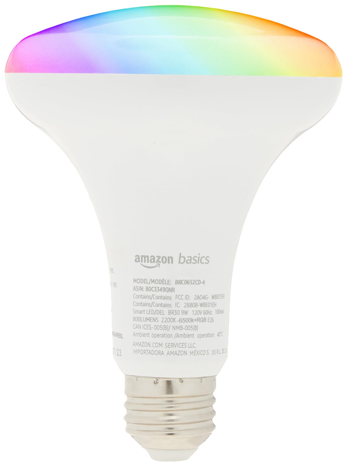 The Amazon Basics Br30 Smart Wifi Home Alexa Enabled Led Light Bulb, 65 Watt Equivalent, Energy Efficient 9W, E26 Standard Base, Color Changing Rgbw Full Color, Dimmable, 15,000 Hour Lifetime | 4-Pack Is A Great Choice For Your Home Or Office. These Wifi Enabled Smart Bulbs Can Be Controlled By Any Smart Device With The Amazon Alexa App. These 65 Watt Replacement Light Bulbs Use Only 9 Watts Of Energy, Costing Only $1.08 Per Year To Operate. That Is A Saving Of $91.66 In Energy Costs Over Life Of The Bulb Compared To The Incandescent Equivalent (Based On 3 Hours/Day, $0.11/Kwh). Tunable White Color Temperature From 2200K - 6500K; Cri >= 90 Illuminates Natural Colors Wherever The Light Is Applied