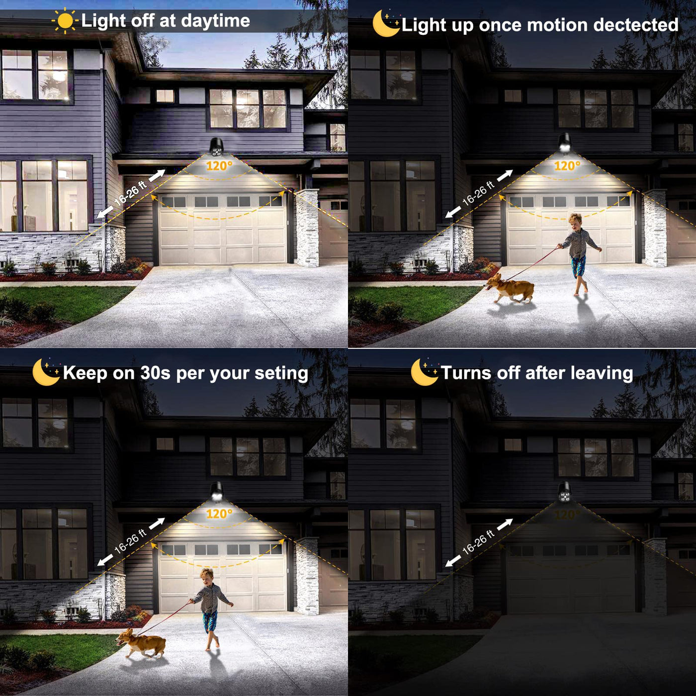 Light Color Temperature: 6000k Motion Angle Of Detection: 120 Motion Range: Up To 30 Ft. Power: Battery (Not Included) Lighting Modes: Light-Sensitive Activation And Motion Activated Box Includes: Motion Sensor Light, Mounting Hardware & Anchor, User Manual