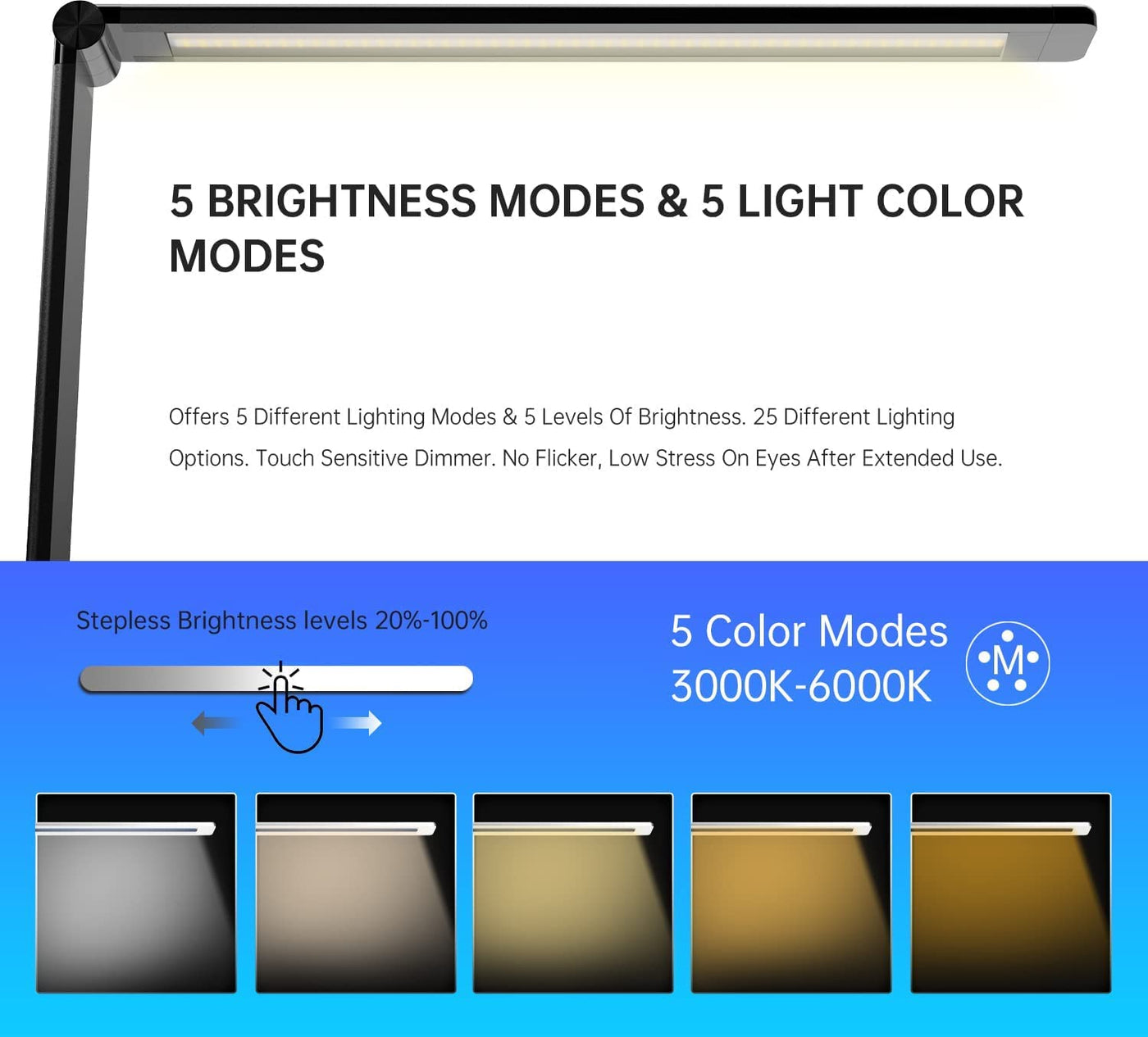 Q: What are the lighting modes available on this lamp?A: The lamp features three distinct lighting modes, which can be used for different tasks such as reading, studying, or relaxing.