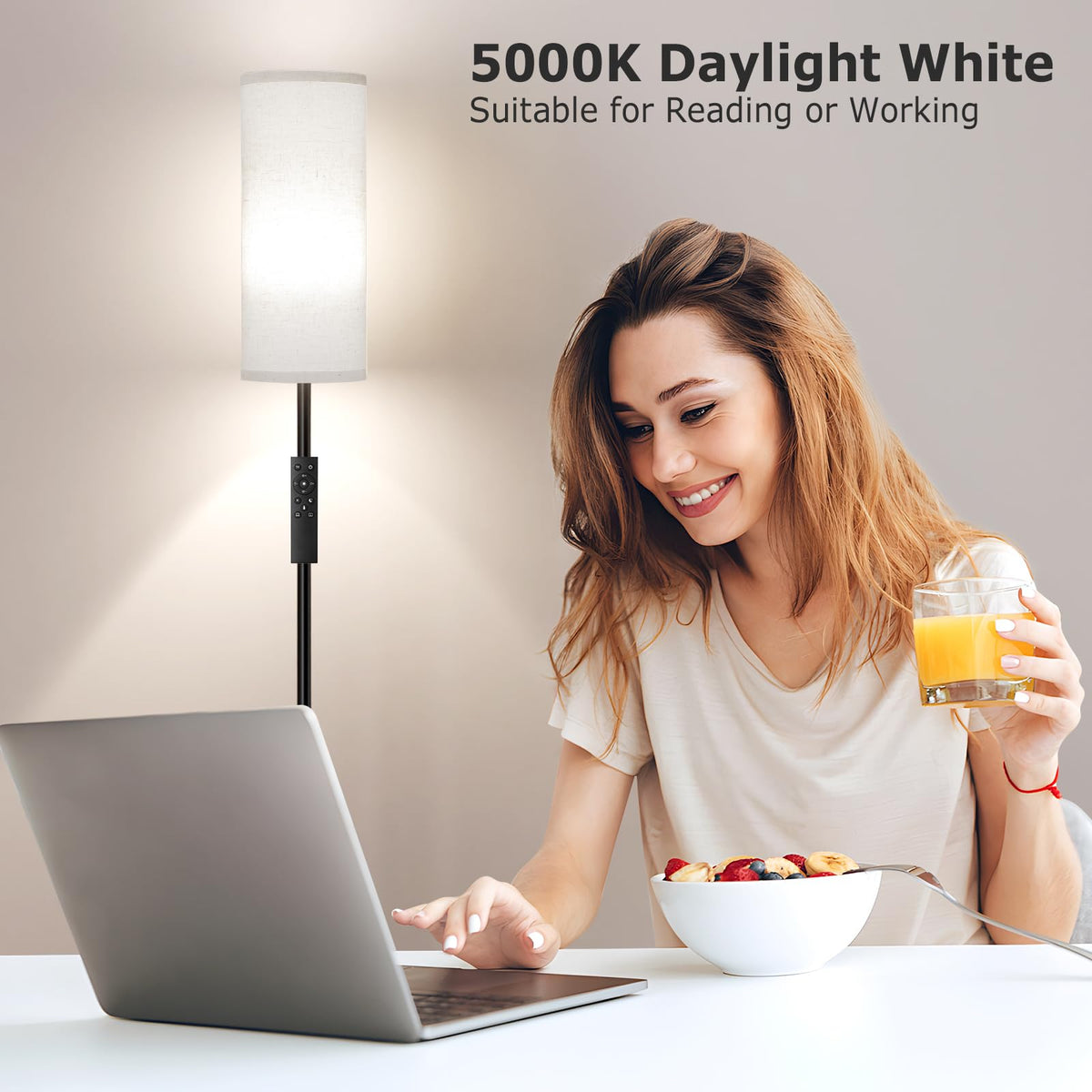 Ambimall 64'' Floor Lamps For Living Room With Remote Control And Stepless Dimmable Colors Temperature & Brightness, 9W Bulb Included(Beige Lampshade & Black Pole)