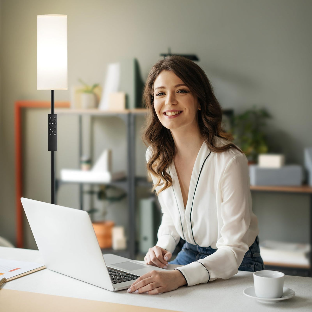 Q: How does the remote control work for this floor lamp?A: The floor lamp comes with a remote control that allows you to steplessly adjust the brightness from 30% to 100% and change the color temperature, providing convenience and ease of use.