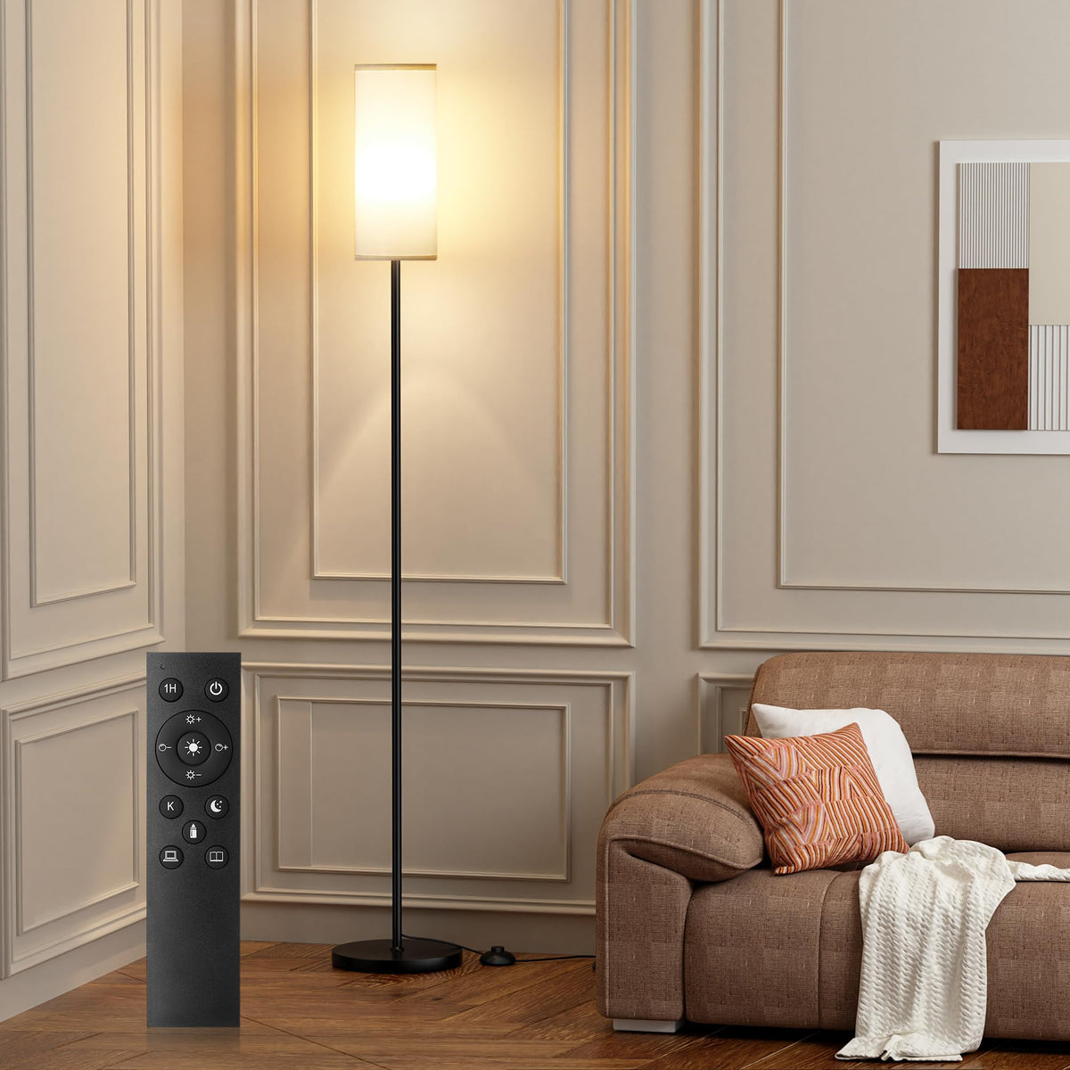 Ambimall 66'' Floor Lamps For Living Room With Remote Control And Stepless Dimmable Colors Temperature & Brightness, 9W Bulb Included(White Lampshade & Black Pole)