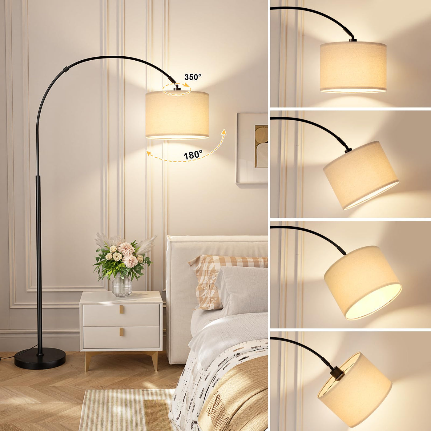 Ambimall 70'' Dimmable Arc Floor Lamp With Remote, Color Temperature And Brightness Adjustable, Arched Floor Lamp With Rotating