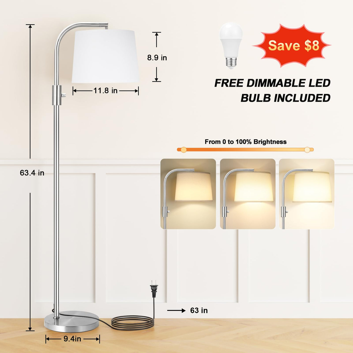 Dimmable Floor Lamp Is A Fantastic Addition To Any Room. Floor Lamps Combines Style, Functionality, And Flexibility In Lighting, Add A Touch Of Elegance And Functionality To My Living Room. This Modern Standing Lamp Not Only Enhances The Aesthetics Of The Room But Also Provides Versatile Lighting Options. The Design Is Sleek And Contemporary, Making It A Perfect Fit For Both Living Rooms And Bedrooms. Its Tall Stature And The Gentle Arc Of The Lampshade Add A Touch Of Sophistication To The Room. It'S Not Just A Source Of Light But Also A Statement Piece That Complements The Decor. Standing Lamp Include 9W Led Edison Bulb. It Emits Warm, Soft Light That Creates A Cozy Atmosphere. The Dimmable Function Is Fantastic, Allowing Me To Adjust The Brightness To Suit Various Moods And Activities. Whether It'S Reading, Relaxing, Or Setting The Ambiance, This Lamp Delivers. The Build Quality Is Excellent. Tall Lamp Feels Stable And Well-Constructed. The Footprint Is Compact, Ensuring It Doesn'T Take Up Too Much Space, Even In Smaller Rooms. Floor Lamp Was Easy Peasy To Put Together. Just Remove The Small Plastic Rings Between Each Pole. I Found It Easiest To Screw All The Poles Together First Then Lay The Base On Its Side, Put The Screw Up Through The Bottom Then Screw It In And Tighten, Then Stand Up. The Dimming Feature Is Awesome.. I'D Rather The Dimmer Switch Up High Then The Foot Control. Tall Floor Lamp For Bedroom.