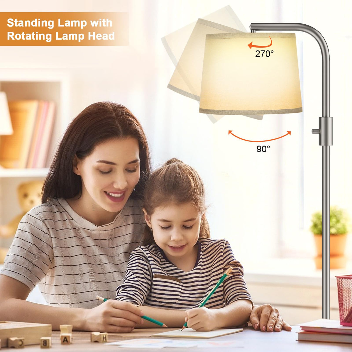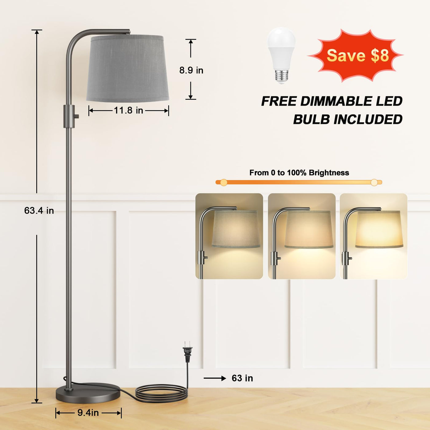 Ambimall Fully Dimmable Floor Lamp - Floor Lamps 9W Led Light Bulbs, Standing Lamps For Living Room With Adjust Head, Modern Standing Light Rotary Switch, Tall Lamp For Bedroom( Grey And Grey)