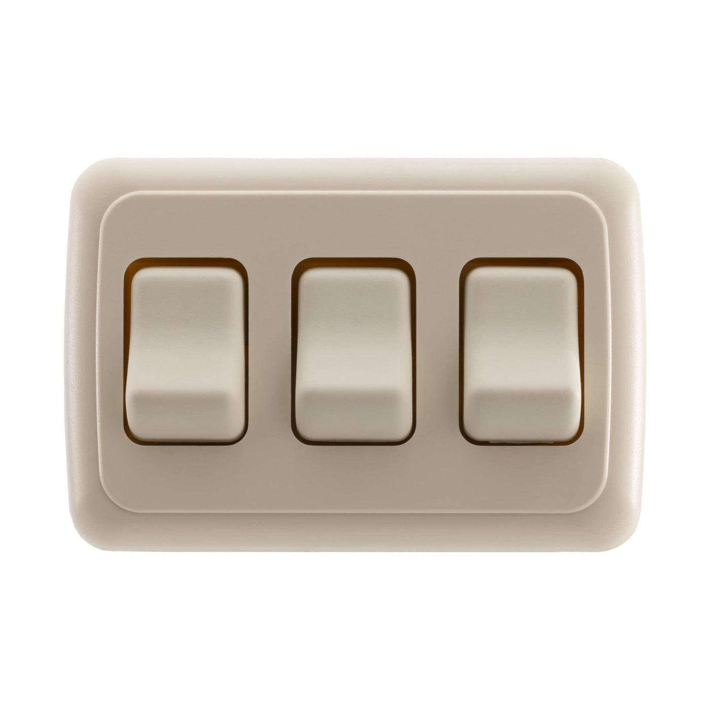American Technology Components Triple Spst On-Off Switch With Bezel, 12-Volt, For Rv, Trailer, Camper (Almond)
