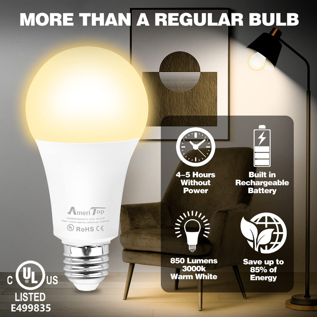 Ameritop Rechargeable Emergency Led Light Bulb - 2 Pack A19 Battery Led Bulbs For Power Outage Camping Outdoor Activity Hurrican