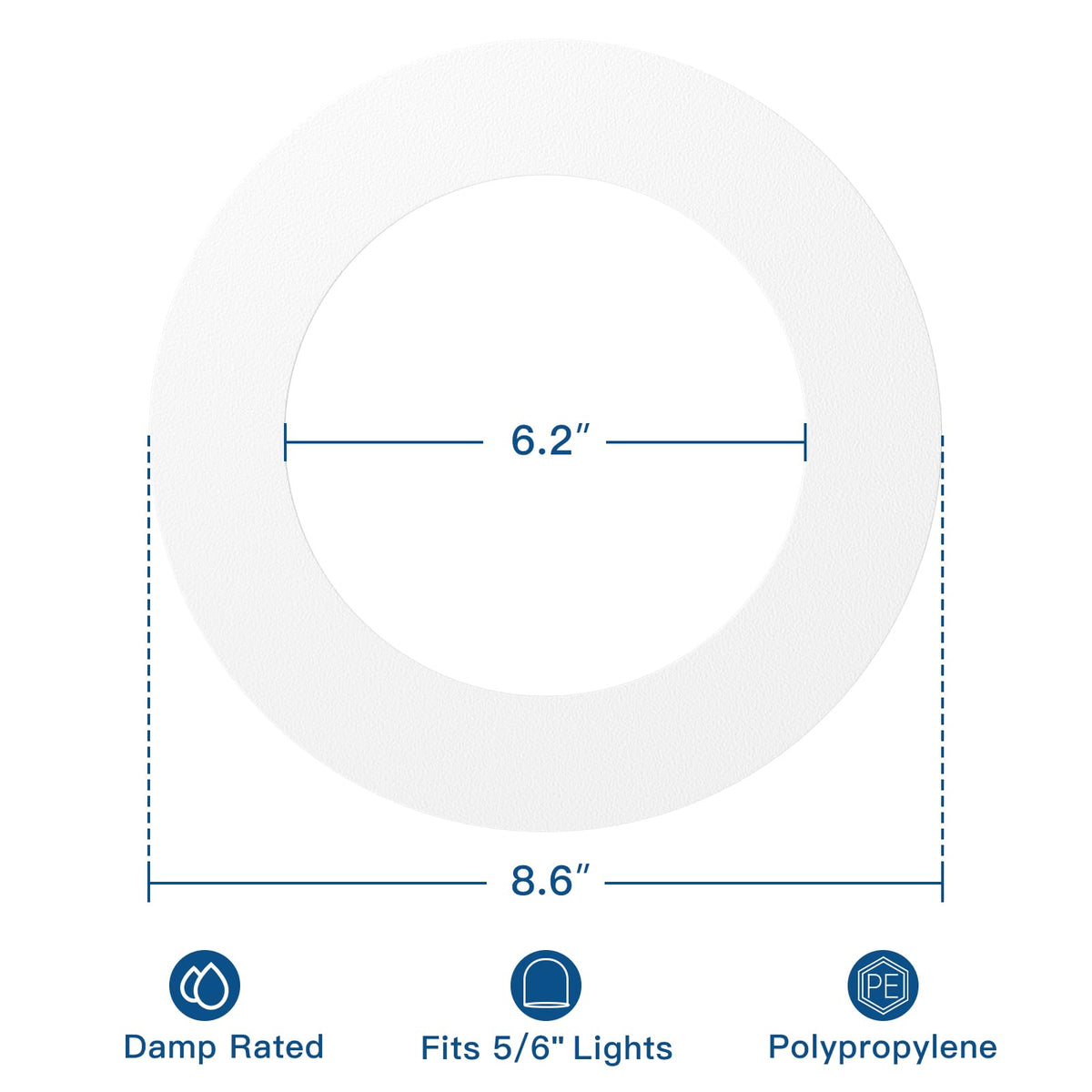 Goof Rings For 6 Inch Recessed Lights White Can Light Goof Trim Ring, Outer Diameter 8.6-Inch, Inner Diameter 6.2-Inch, Durable Plastic Design, Flush Mount