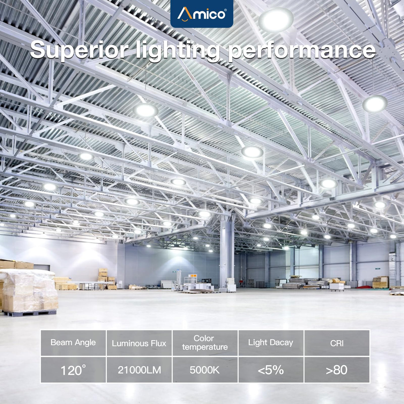 - **High-Quality Assurance**: Manufactured by Amico, our UFO LED high bay lights are UL listed and FCC certified, guaranteeing both quality and safety. We pride ourselves on offering premium products at competitive prices, complemented by professional after-sales support.