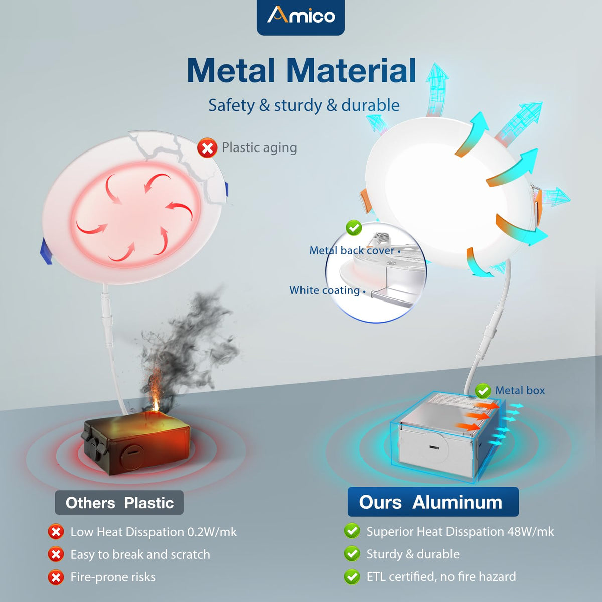 Amico 16 Pack 6 Inch 5Cct Ultra-Thin Led Recessed Ceiling Light With Junction Box, 2700K/3000K/4000K/5000K/6000K Selectable, Dim