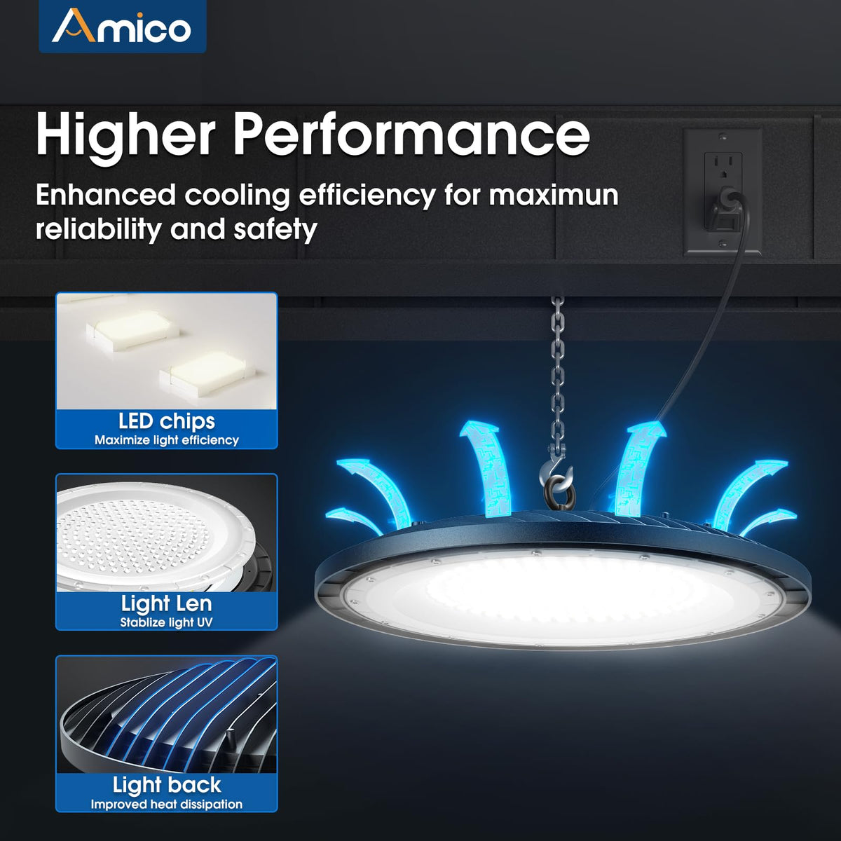 - High-Quality Assurance: Backed by professional after-sales support, Amico stands by the quality of its products. The UFO LED high bay lights are available in convenient 10-pack options, making it easy to outfit multiple spaces with reliable, high-performance lighting.