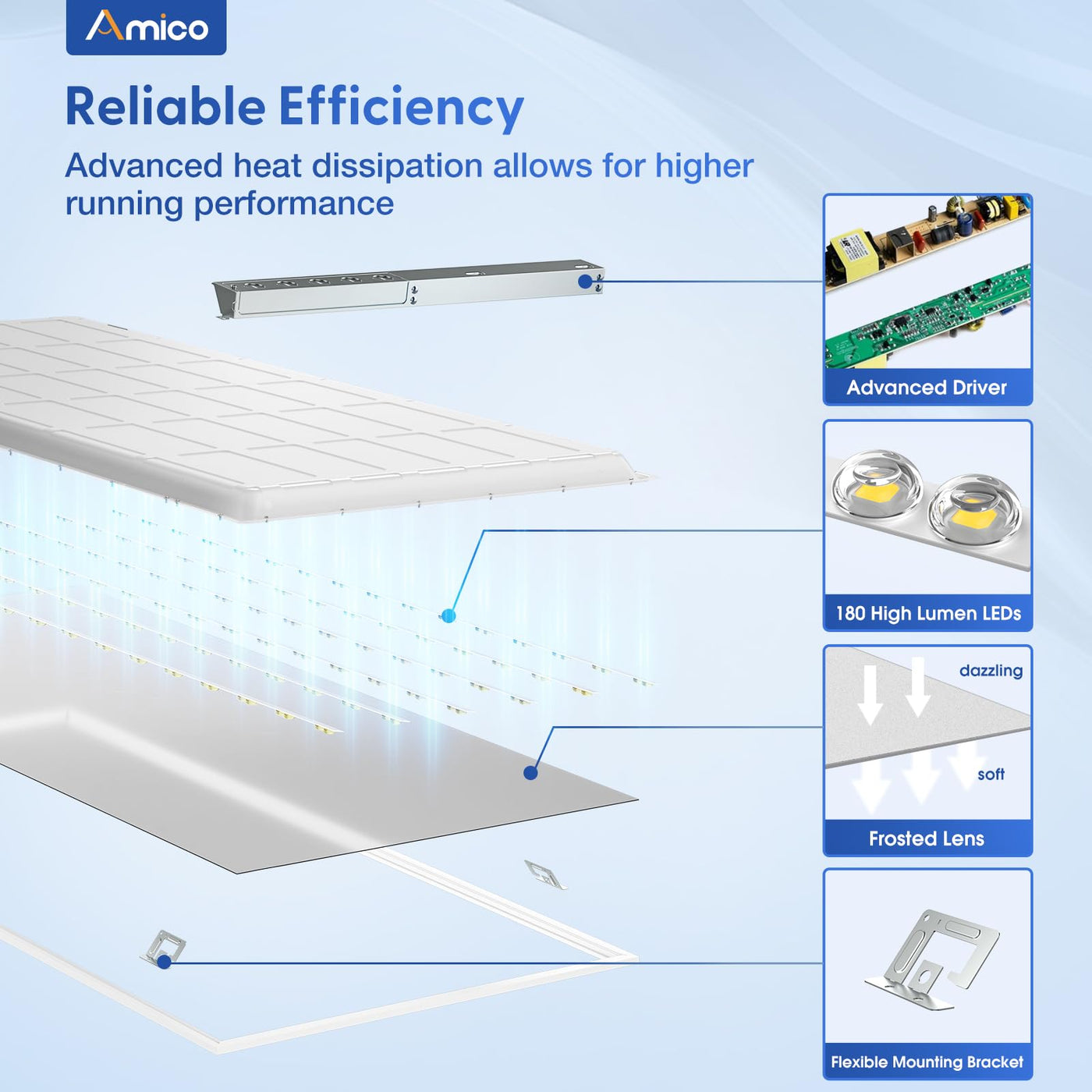 Q: Is the Amico LED Flat Panel Light easy to install?A: Absolutely! The LED Flat Panel Light is designed for easy installation in standard 2x4 drop ceiling grids, requiring no additional tools, making it ideal for quick setups in offices, schools, and hospitals.