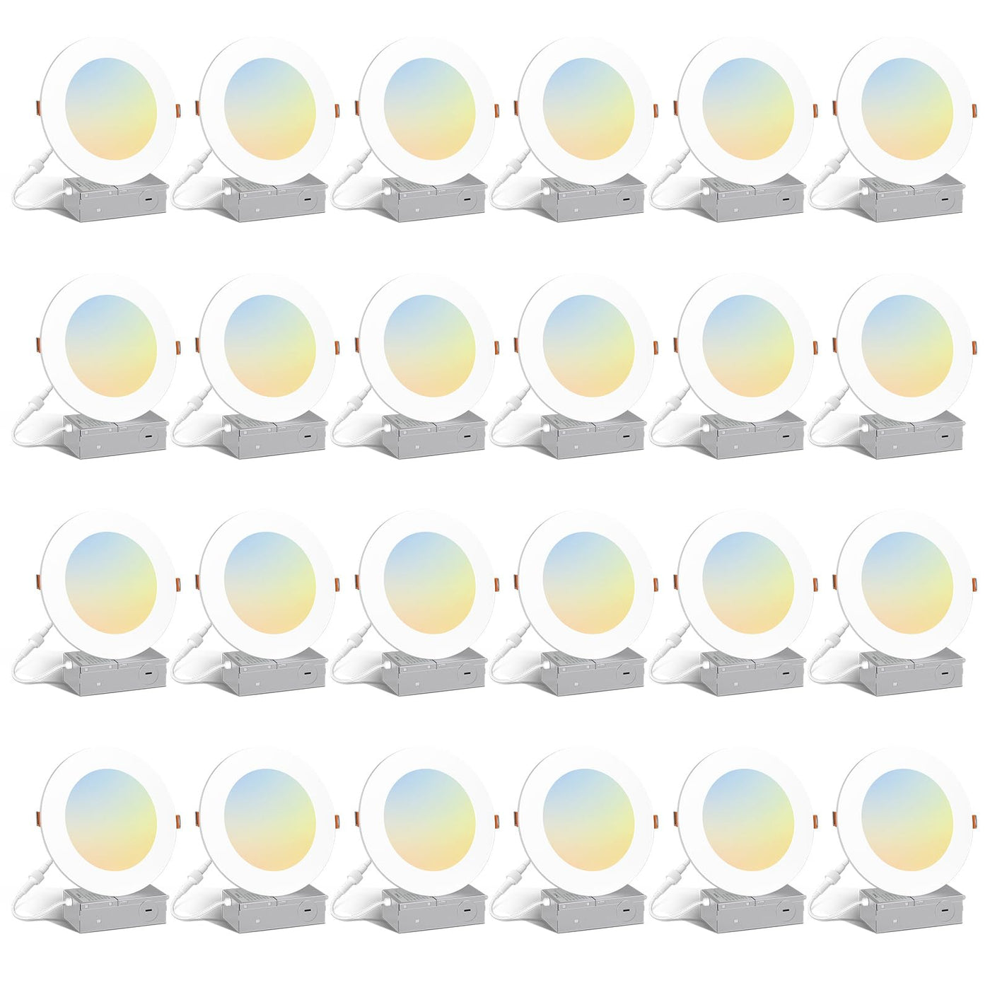 Amico 24 Pack 6 Inch 5Cct Ultra-Thin Led Recessed Ceiling Light With Junction Box, 2700K/3000K/4000K/5000K/6000K Selectable, 100