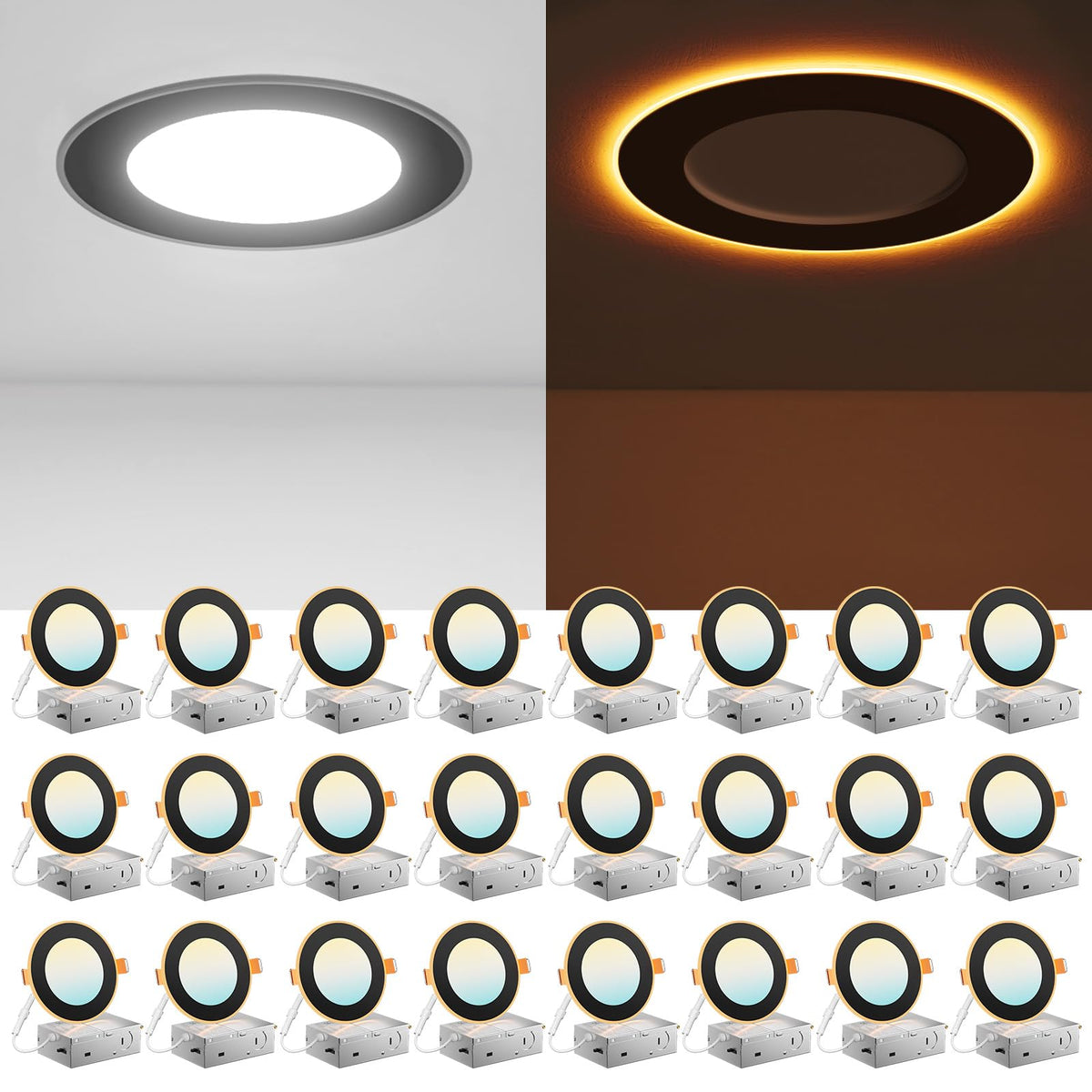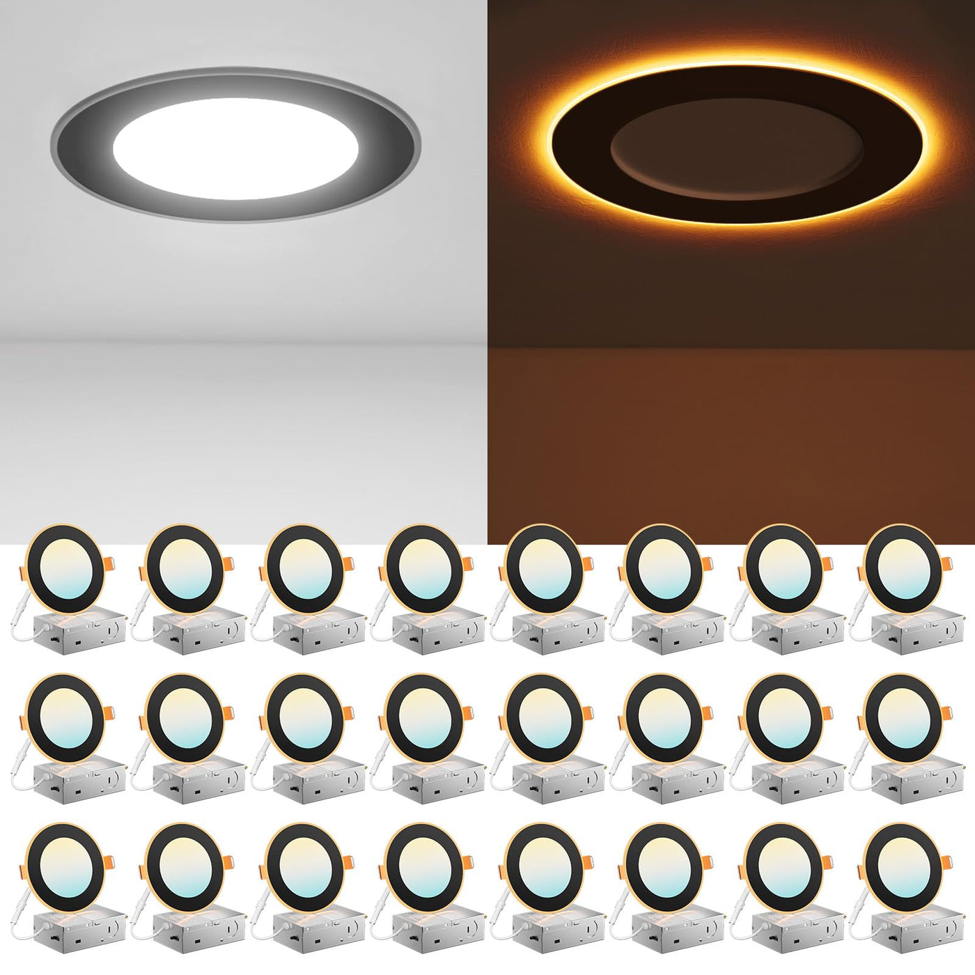 Amico 24 Pack Black 4 Inch 5Cct Led Recessed Ceiling Light With Night Light, 2700K-5000K Selectable Ultra-Thin Recessed Lighting