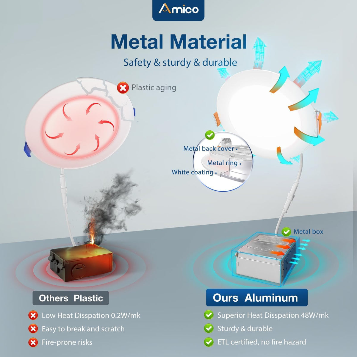 Q: What kind of support does Amico provide for their recessed lighting products?A: Amico offers excellent customer support, addressing any concerns within 12 hours. Additionally, all their recessed lighting products are certified by ETL, ensuring they meet high safety and performance standards.