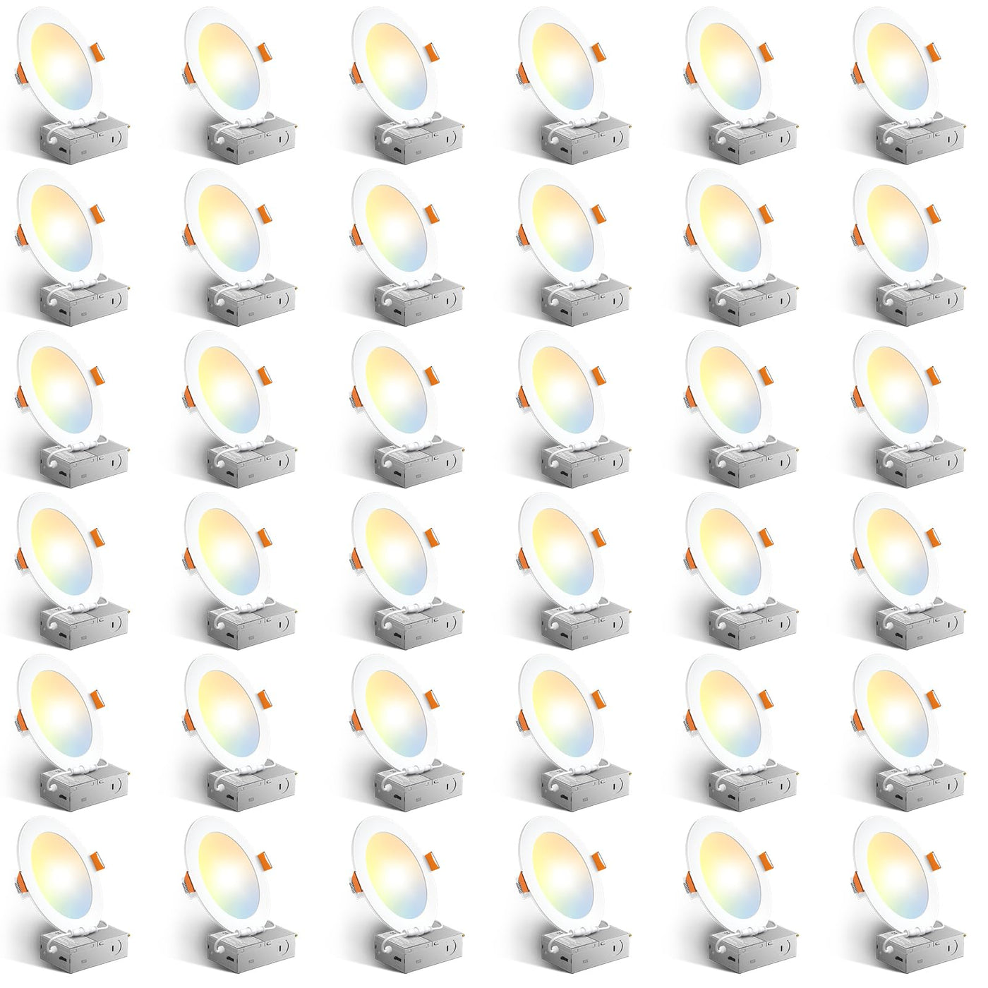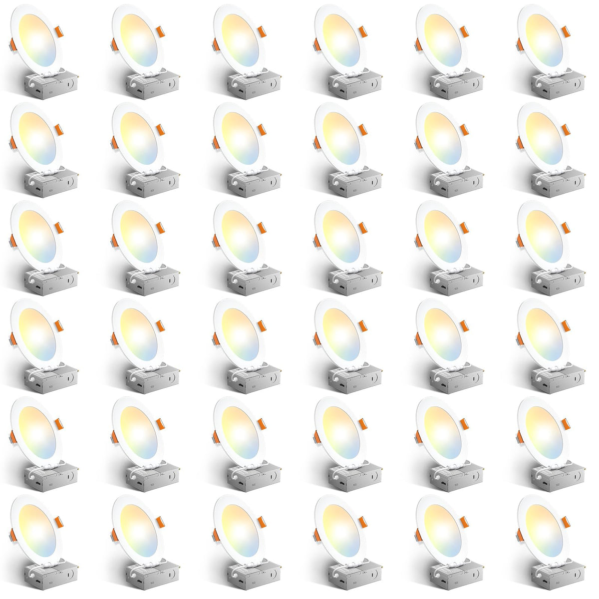 Amico 36 Pack 6 Inch 5Cct Ultra-Thin Led Recessed Ceiling Light With Junction Box, 2700K/3000K/3500K/4000K/5000K Selectable, 12W
