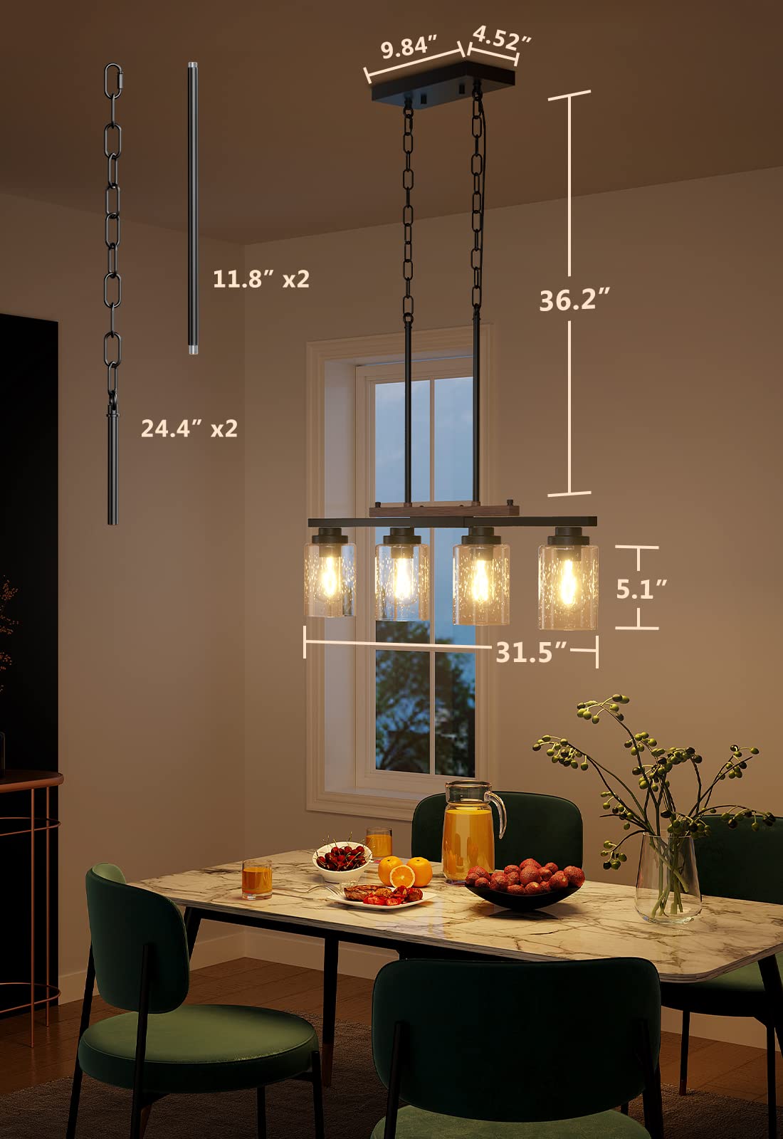 - **Fully Adjustable Dimensions**: Tailor the chandelier to fit your space perfectly with adjustable rods that offer a maximum hanging length of 45.07 inches. Whether used as pendant lights over the dining table or as striking kitchen island lights, this fixture seamlessly integrates into any decor.