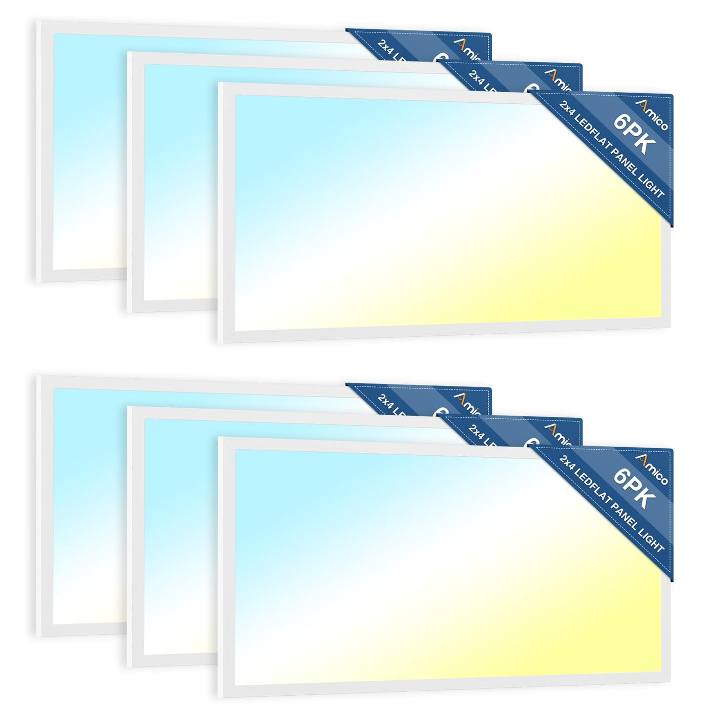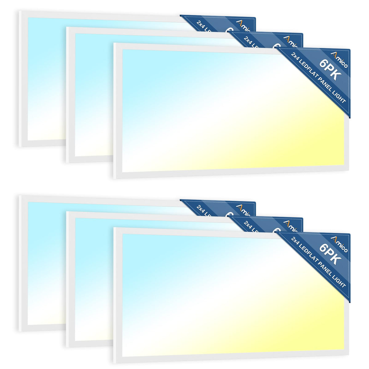 Amico 50W 6Pack 2X4 Led Flat Panel Light Dimmable Led Drop Office Ceiling Light